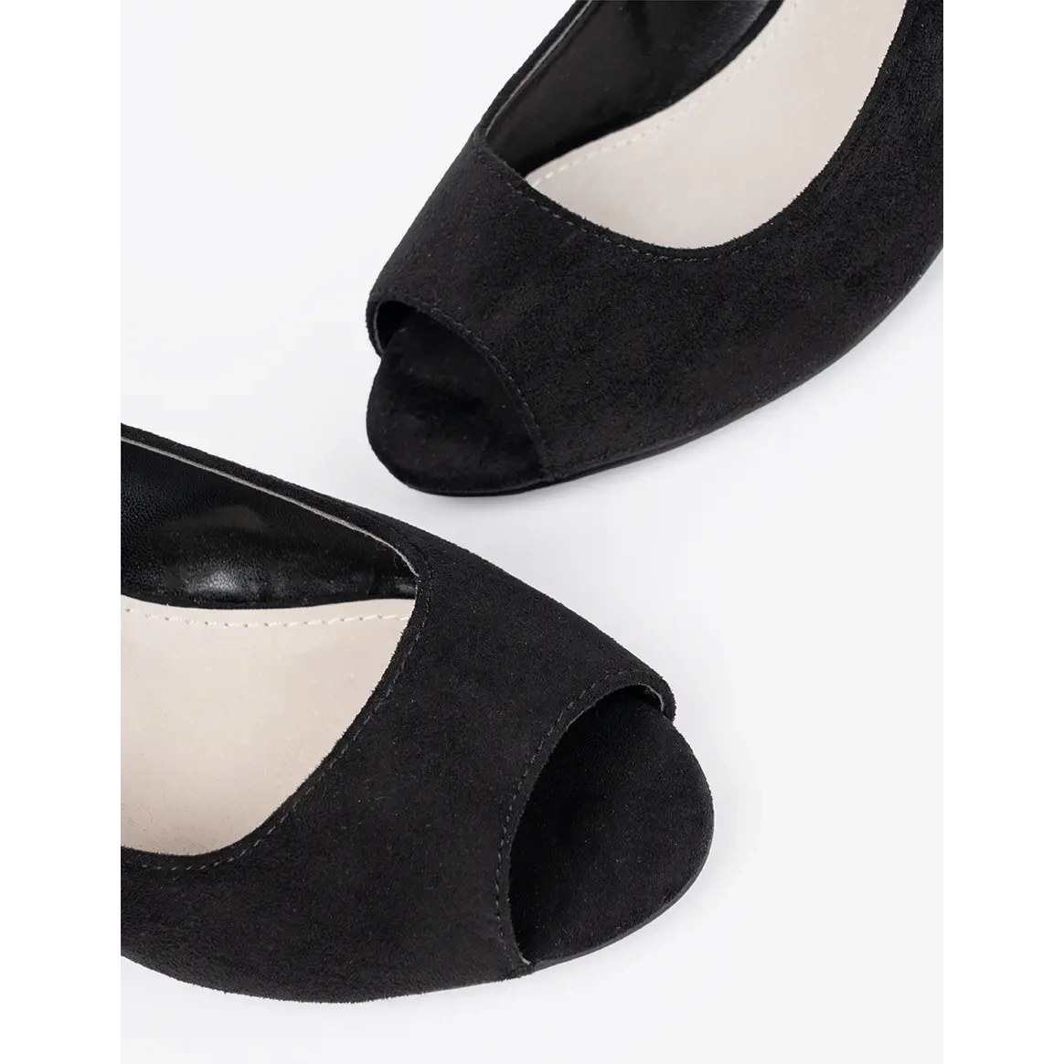 N'attendez plus et enrichissez votre garde-robe avec ces extraordinaires sandales à talons hauts en daim noir, qui seront un complément parfait aussi bien pour les occasions spéciales que pour un usage quotidien !