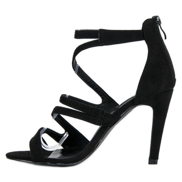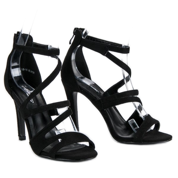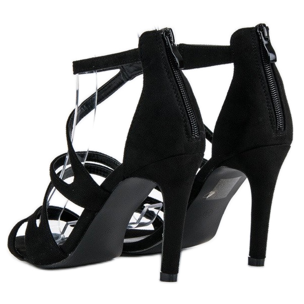 Découvrez l'élégance et la classe avec des sandales à talons hauts en daim noir d'une marque renommée. Ces chaussures pour femmes extrêmement élégantes allient un design moderne à une coupe classique, ce qui en fait un choix idéal pour les occasions spéciales et les sorties en soirée.
