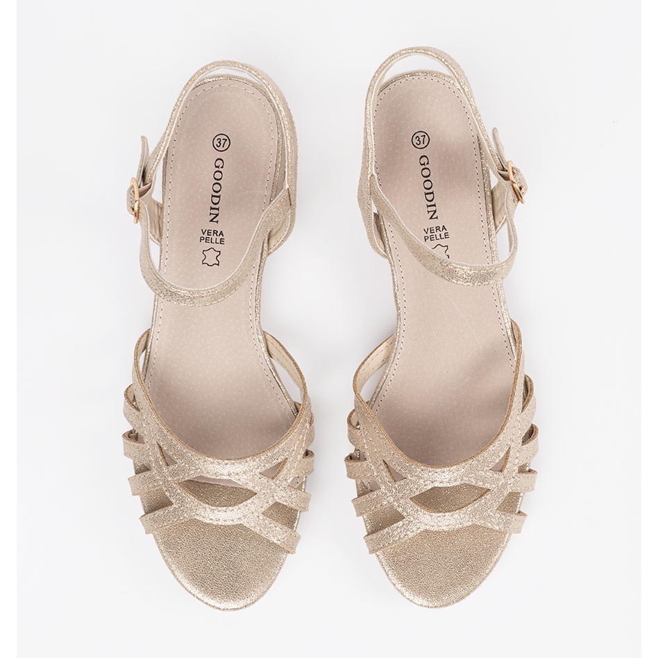 Détails: Goodin Sandales en or avec un insert en cuir doré