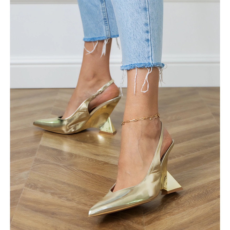 Les sandales en or sur un coin géométrique sont un excellent choix pour les femmes qui veulent combiner le style, le confort et l'élégance. Ces sandales classiques s'intègrent parfaitement dans les dernières tendances de la mode.