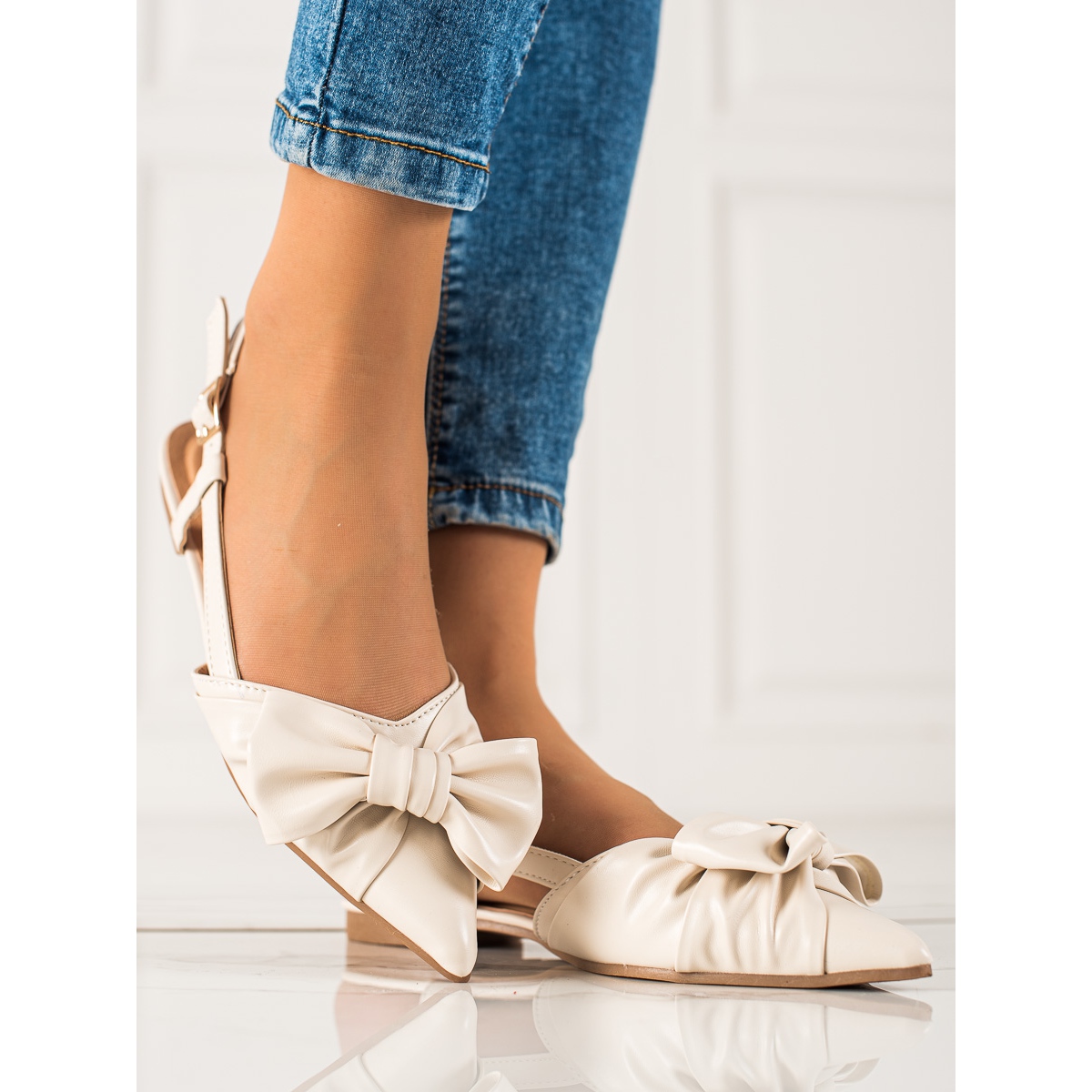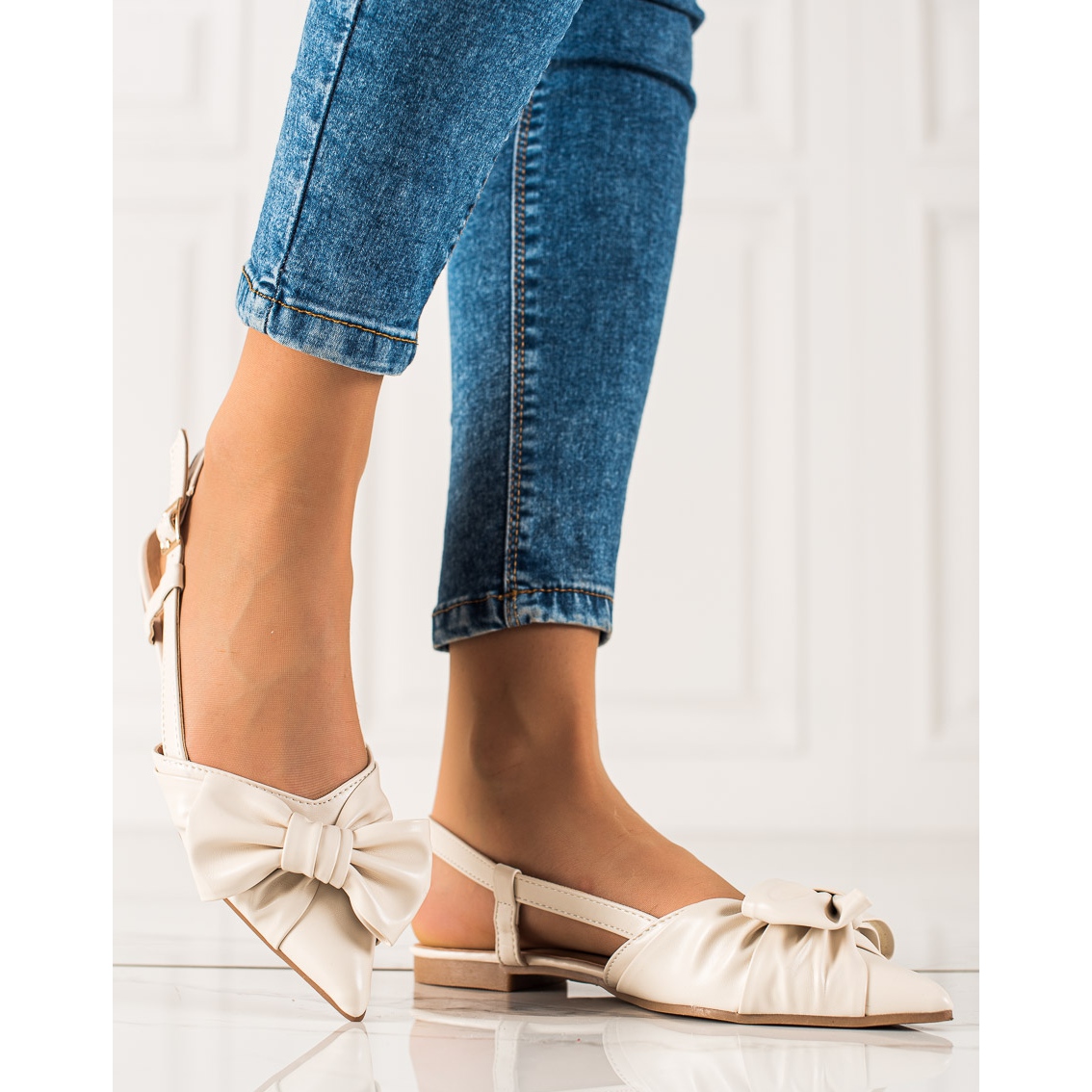 Ce modèle se caractérise par un talon ouvert et un talon plat de 1,0 cm de haut, qui garantit le confort même lors d'une utilisation prolongée. La fermeture à boucle permet un ajustement et un ajustement parfait au pied. Le bout rond ajoute un caractère classique et le nœud subtil est un détail charmant qui distingue ces chaussures des autres.