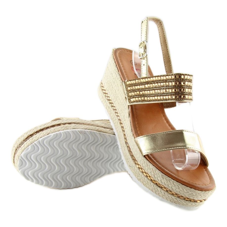 Détails: Sandales espadrilles dorées à semelles compensées GG-52P Gold d'or