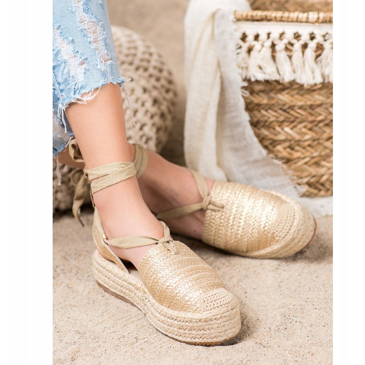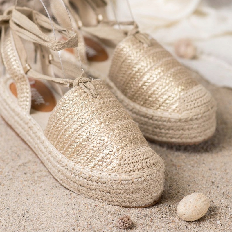 Découvrez les extravagantes sandales espadrilles Seastar de couleur dorée, qui s'adapteront parfaitement à votre style de vacances. Ces chaussures subtiles, entièrement réalisées dans un matériau semblable à de la paille, sont le choix parfait pour les amateurs de style bohème et léger.