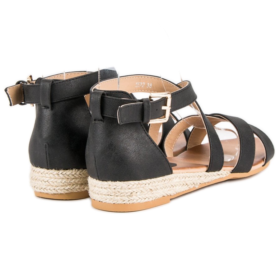 Détails: Super Mode Sandales espadrilles plates le noir