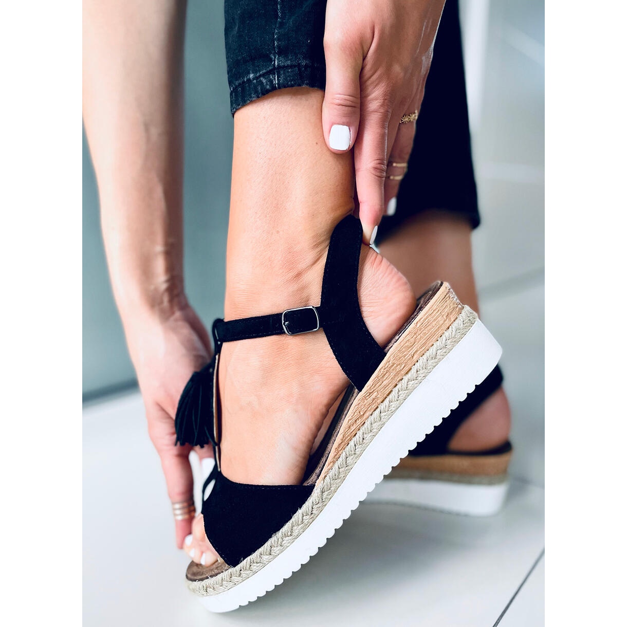 Nous vous présentons les sandales espadrilles compensées noires Bessi Black - le choix parfait pour les journées d'été ! Ces sandales pour femmes uniques combinent un design moderne avec un style bohème, ce qui en fait une proposition parfaite au quotidien.