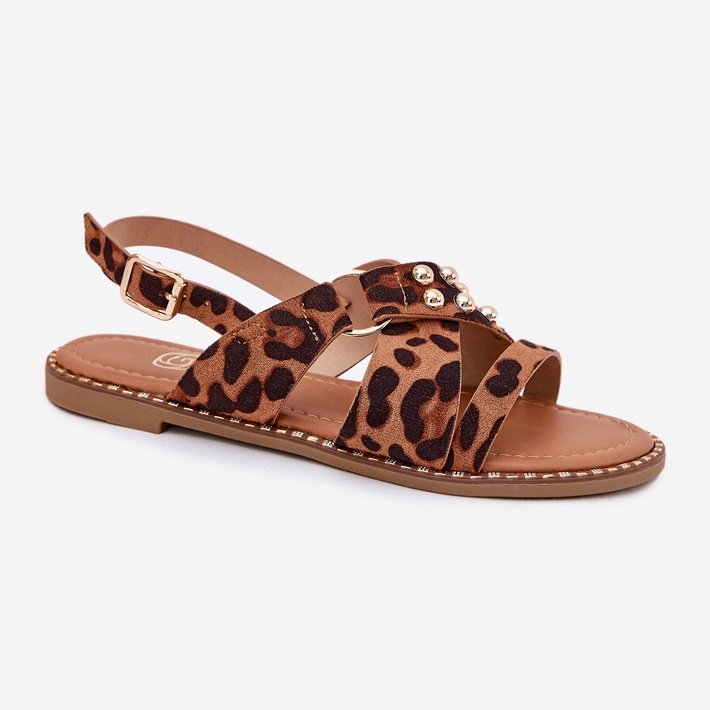 Détails: Boto Sandales féminines à thèmes avec des robinets dorés Impression de léopard brun