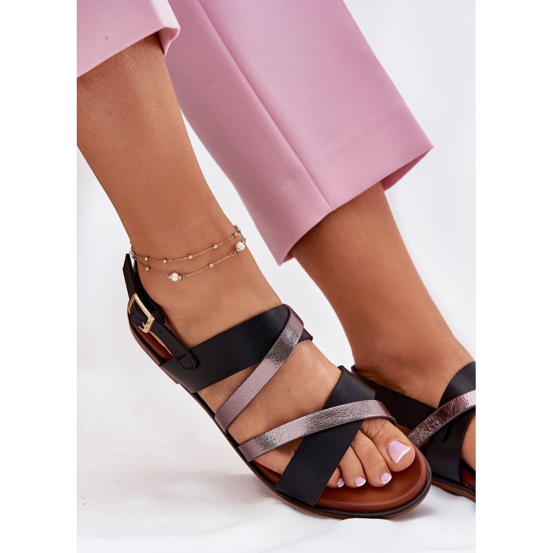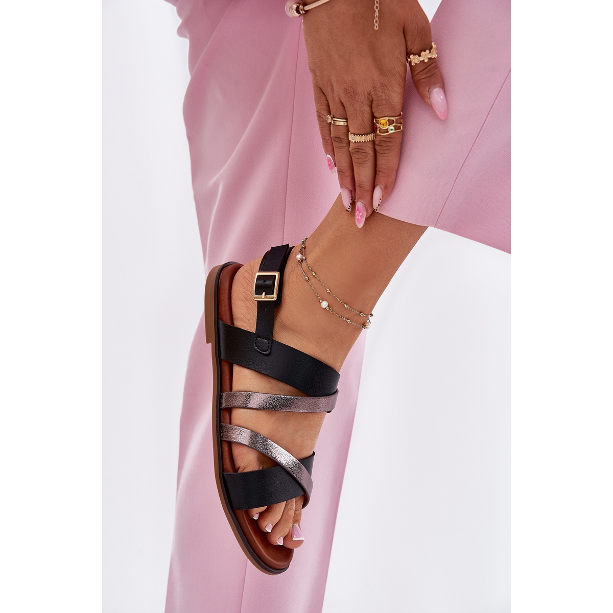 Les sandales féminines à thèmes plates avec Sergio Leone SK086H sont le choix parfait pour chaque femme qui valorise une apparence à la mode et un confort de port. Fabriqués en cuir écologique de haute qualité, ces sandales élégantes sont destinées à des jours chauds, et leur couleur noire les rend extrêmement polyvalents et associent de nombreuses créations d'été.