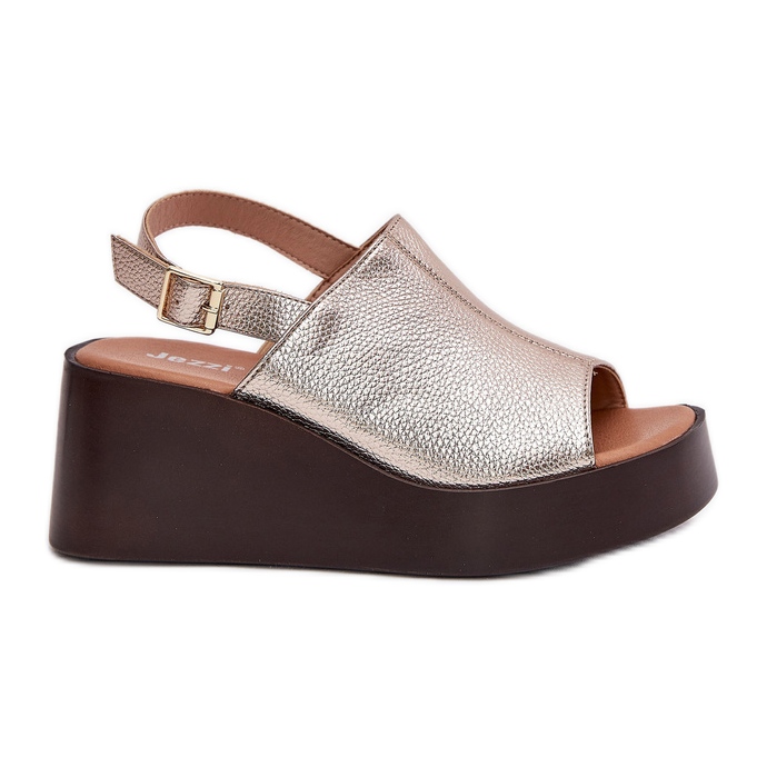 Détails: Jezzi Sandales féminines avec cuir écologique sur la plate-forme et coins dorés d'or