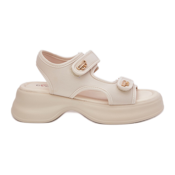Les sandales Evento pour femmes dans une teinte beige sont une combinaison parfaite de confort et d'élégance. Fabriqués en matériau textile de haute qualité, ils offrent un excellent ajustement grâce à la double fixation du fermeture scratch. Deux détails dorés subtils leur donnent un style unique, grâce à lequel ils deviennent un excellent choix pour diverses occasions.