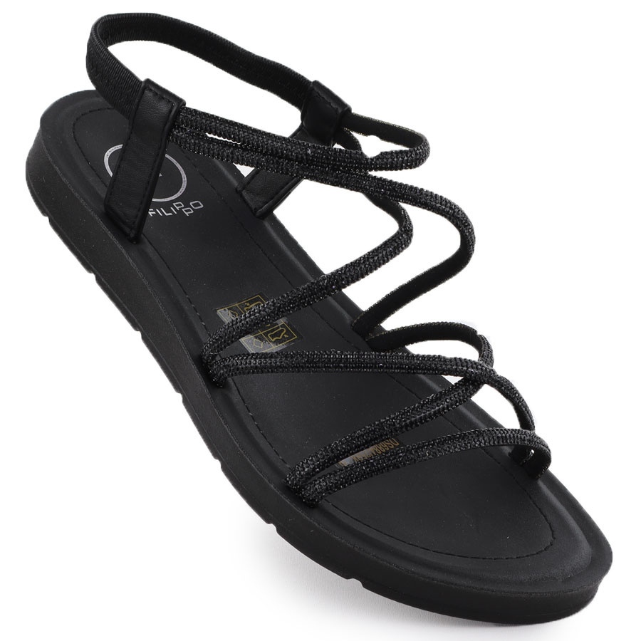Filippo Sandales féminines avec des romans avec des zircons cubiques Black Filippo DS6884 le noir