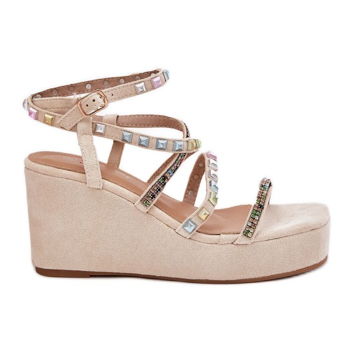 Découvrez les sandales de coin féminines parfaites qui combineront l'élégance et le confort pour les jours d'été! Nos sandales beiges, en daim eco de haute qualité, attirent l'œil avec des sangles décorées qui leur donnent un caractère unique. Grâce à la boucle, chaque paire offre un ajustement parfait à la forme du pied, ce qui les rend non seulement élégants, mais aussi extrêmement confortables.