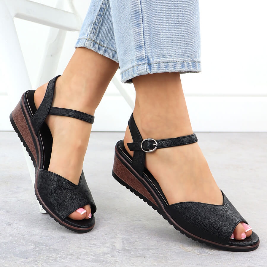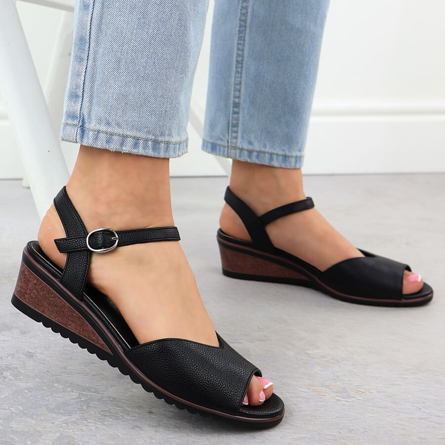 Grâce à l'épaisseur de la semelle de 1,5 cm et à la hauteur du coin de 5 cm, des sandales Potocki 12624 non seulement allonger optiquement les jambes, mais offrent également une stabilité lors de la marche. La boucle réglable offre un ajustement parfait et la taille standard vous permet de choisir facilement la bonne taille.