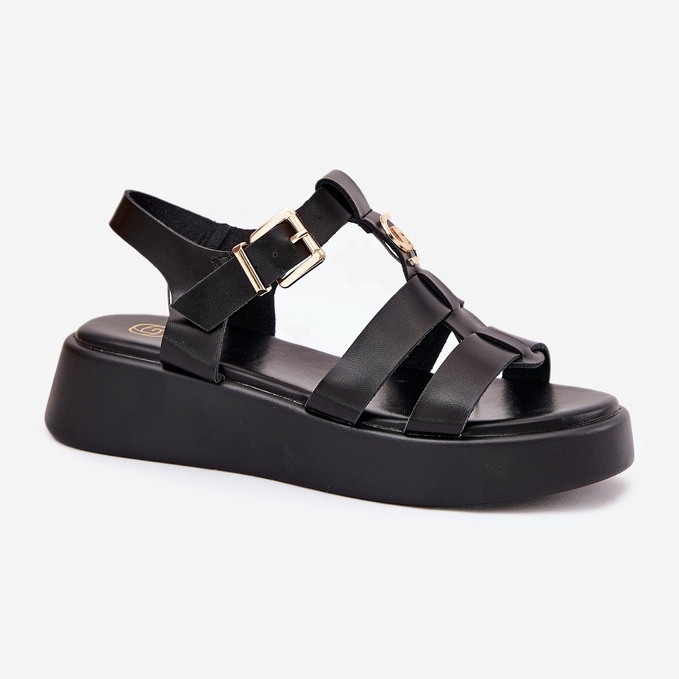Détails: Sandales féminines sur la plate-forme avec un détail doré noir le noir