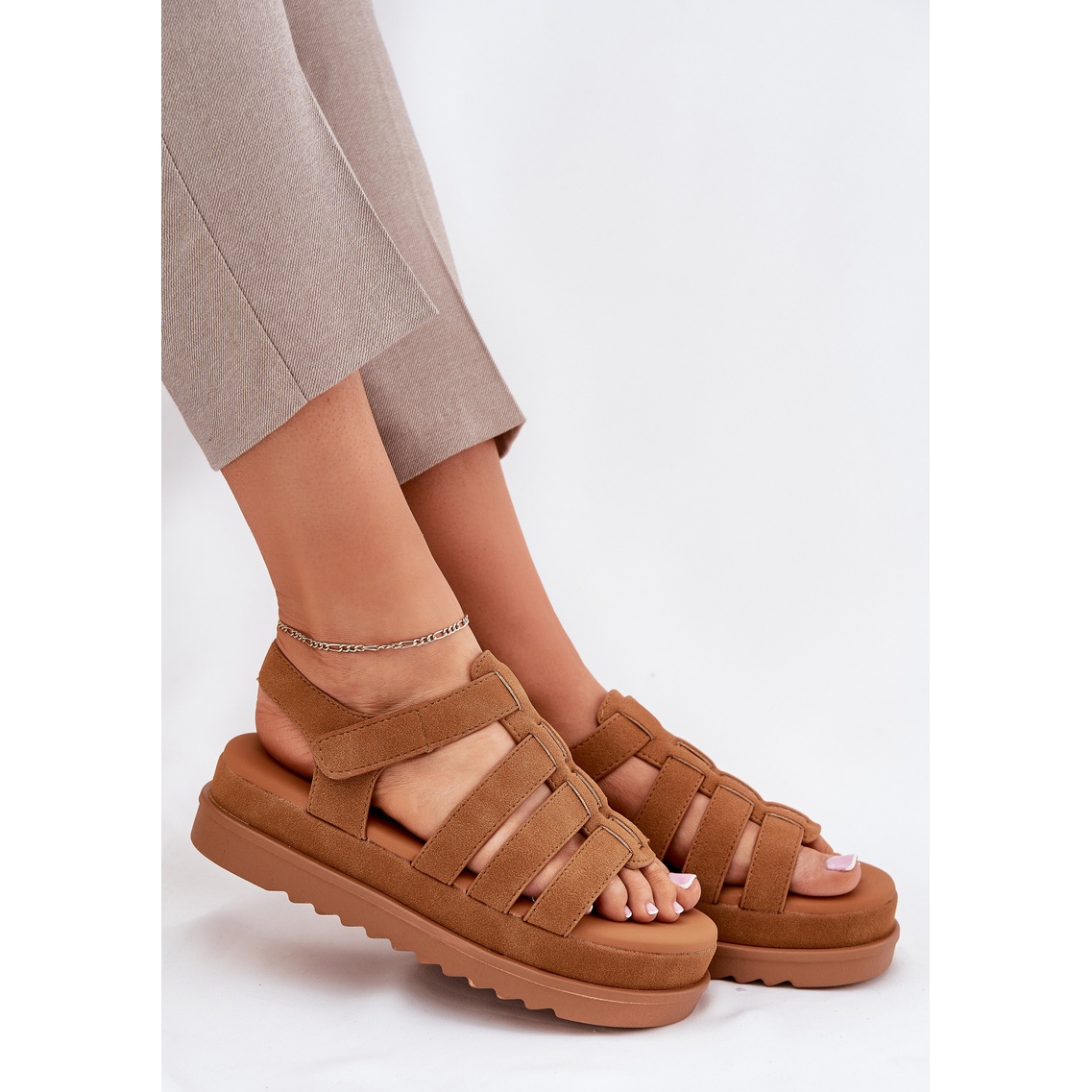 Détails: Inna Sandales féminines sur la plate-forme en daim de chameau brun