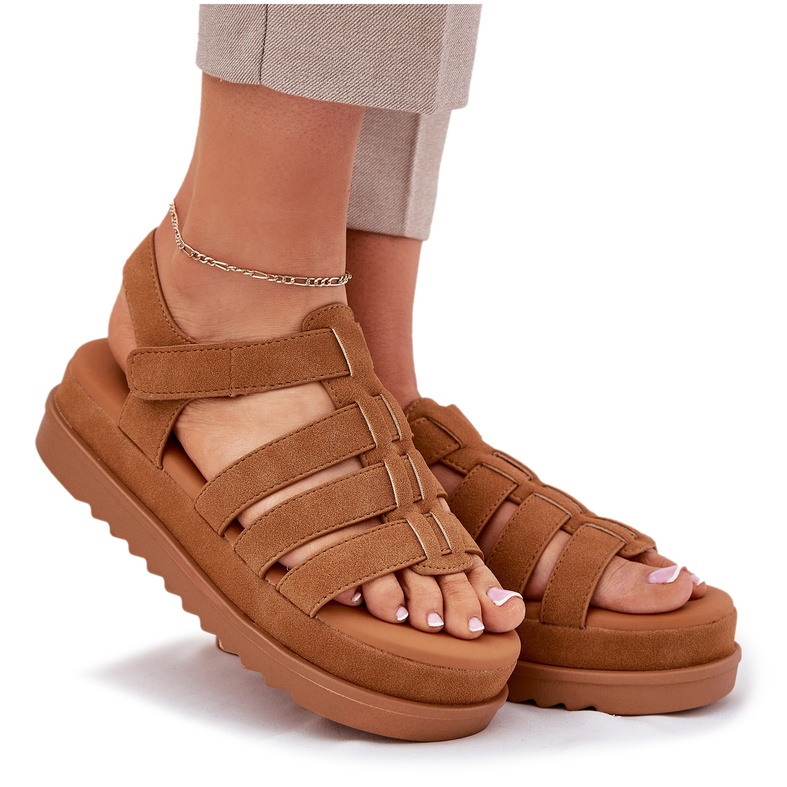 Découvrez le confort et le style avec les sandales féminines sur la plate-forme. Fabriqué en daim eco dans un joli chameau de bronze, ces sandales sont un excellent choix pour les jours d'été. Grâce à l'incorporation sur une plate-forme stable d'une hauteur de 5 cm, ils offrent un confort extraordinaire lors du port, ce qui les rend idéaux pour de longues promenades et des activités quotidiennes.