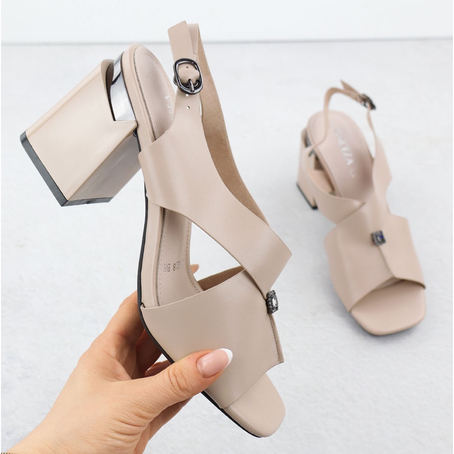 Détails: Sandales féminines sur un poste décoratif beige Vinceza 62238