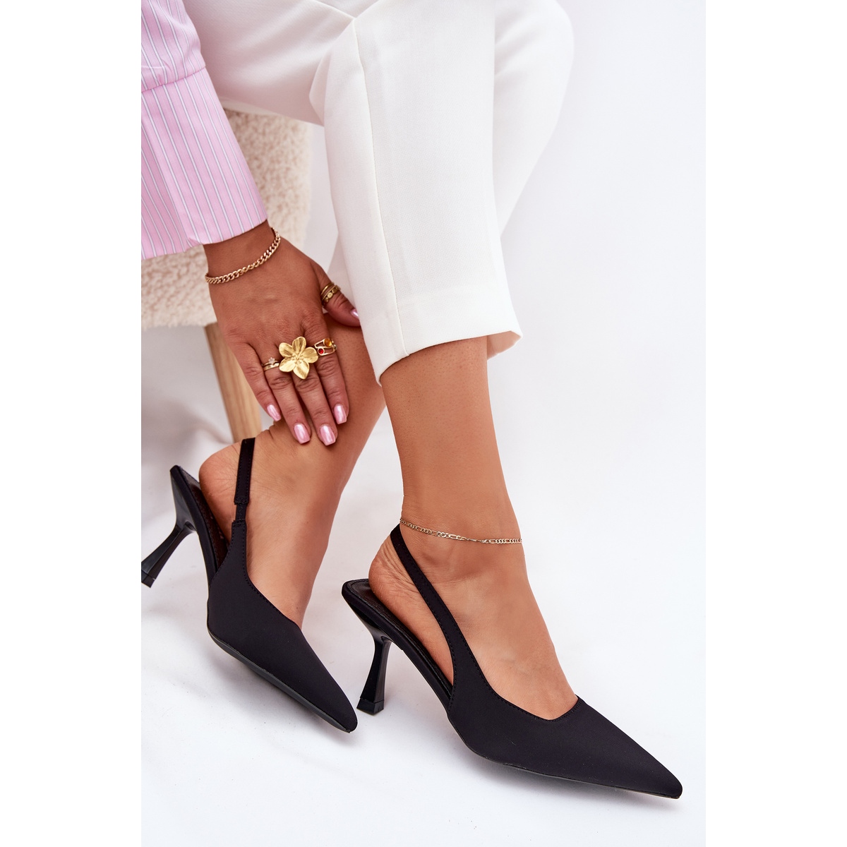 Découvrez l'élégance et le style avec nos sandales pour femmes noires sur une épingle! Fabriqués en matériau textile de haute qualité, ces sandales sont un excellent choix pour toute occasion spéciale. Leur nez pointu leur donne un charme spécial, et un insert doux de cuir écologique garantit un confort qui vous permettra de profiter de chaque instant sans crainte de douleur au pied.
