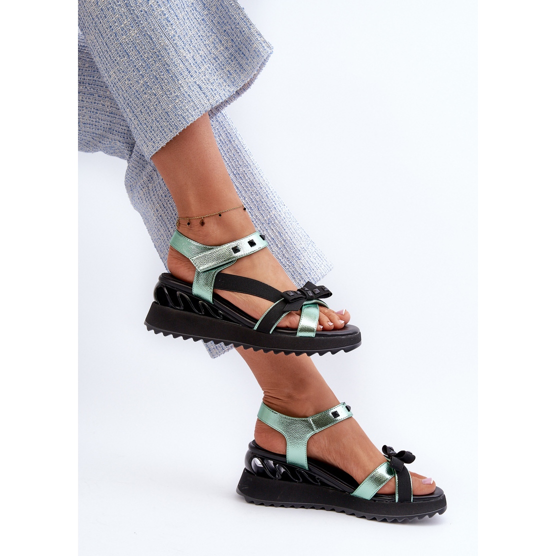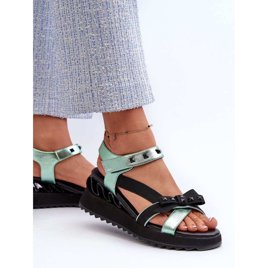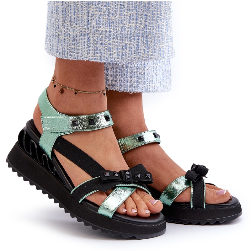 Les sandales féminines de S. Barski avec un arc D&A CR956 en vert sont un modèle unique qui s'intègre parfaitement aux dernières tendances de la mode. Grâce à la plate-forme avec Koturn, ces sandales offrent à la fois le confort et l'élégance, ce qui en fait un choix idéal pour les jours de printemps et d'été.