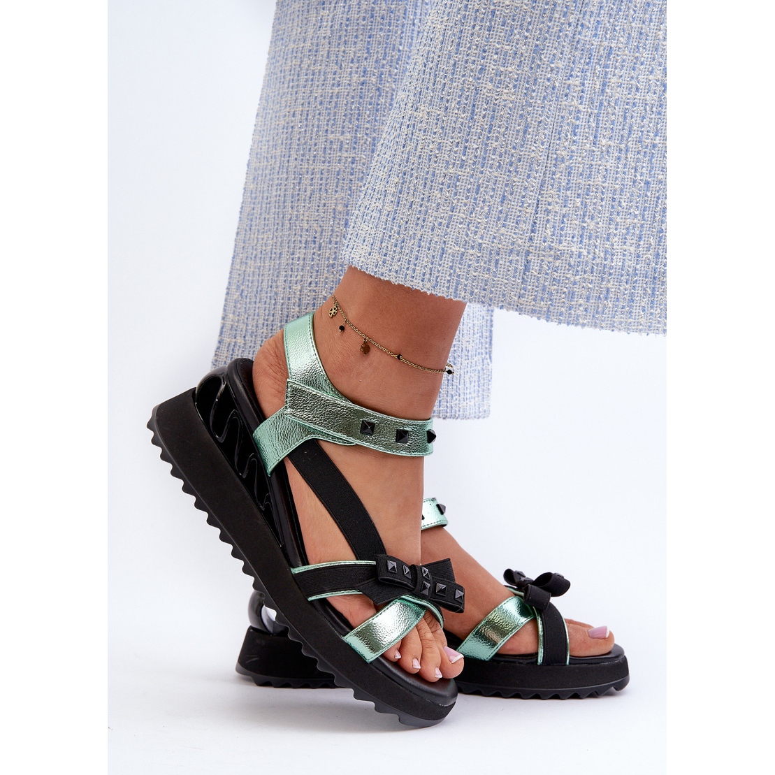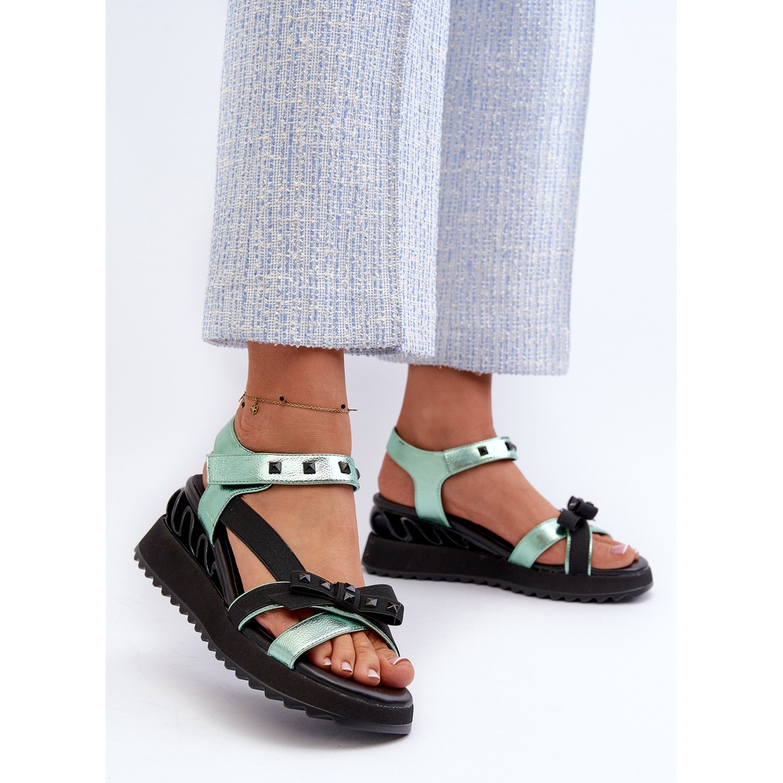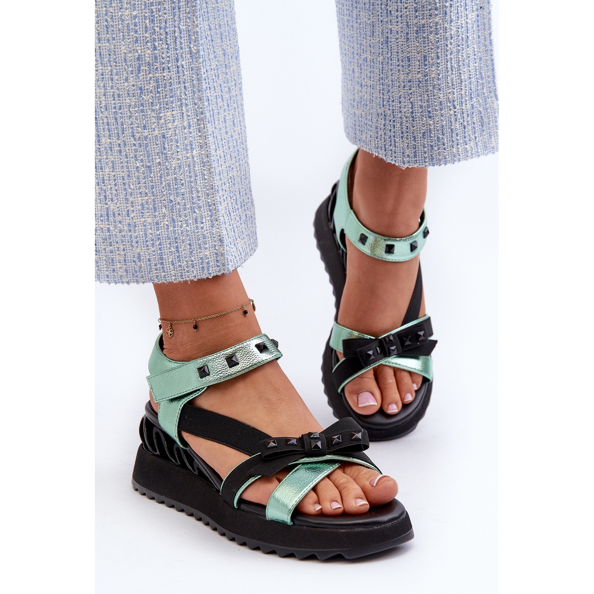 Les sandales féminines de S. Barski avec un arc D&A CR956 en vert sont un modèle unique qui s'intègre parfaitement aux dernières tendances de la mode. Grâce à la plate-forme avec Koturn, ces sandales offrent à la fois le confort et l'élégance, ce qui en fait un choix idéal pour les jours de printemps et d'été.