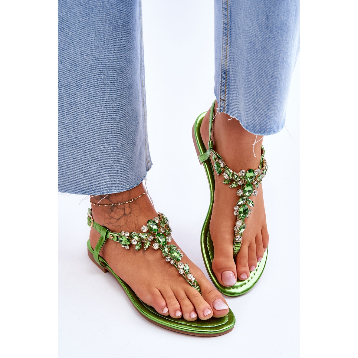 Détails: Sandales Femme Avec Pierres Vert Lenis