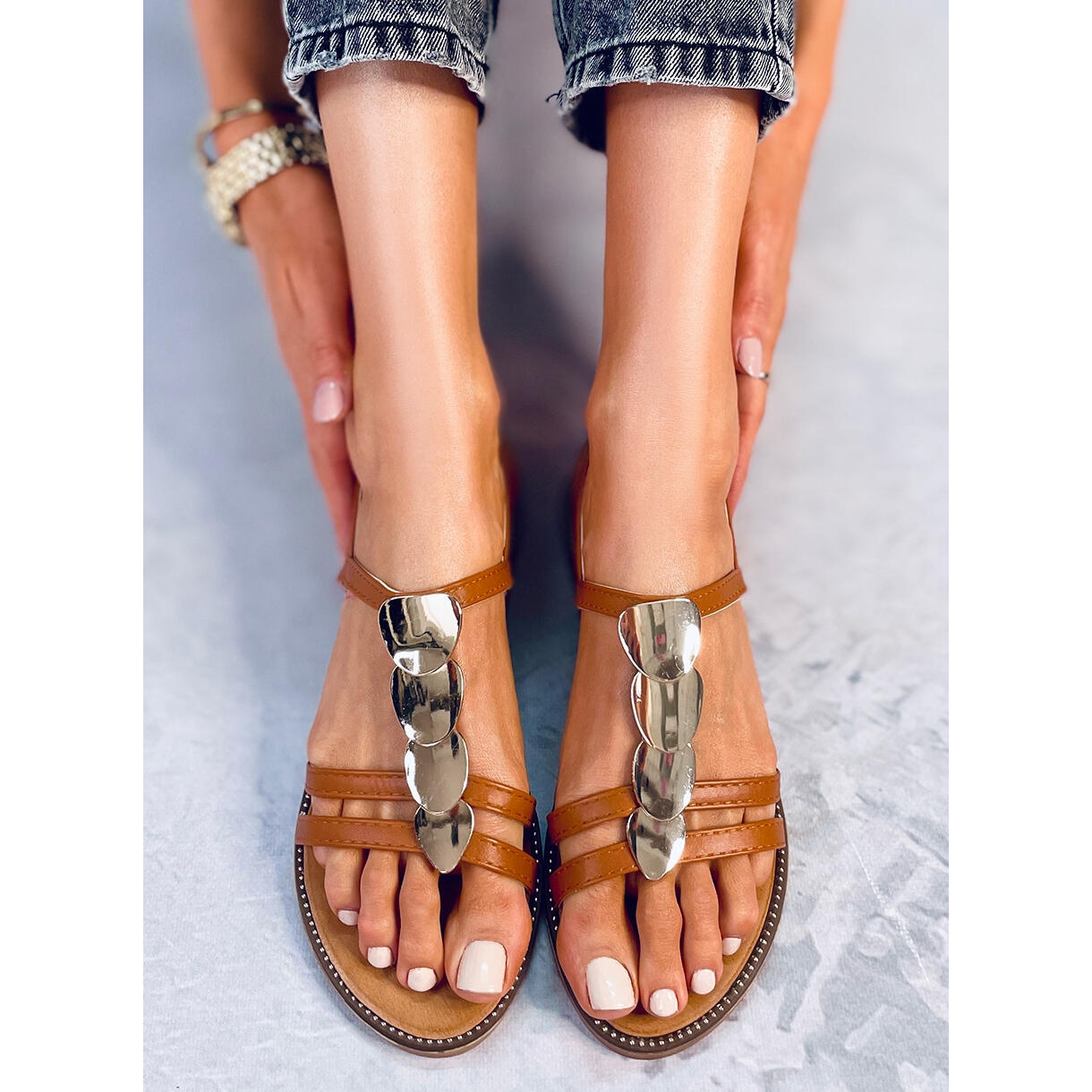 Une attention particulière est portée à l'application dorée accrocheuse, qui complète parfaitement l'ensemble du style et attirera certainement l'attention de votre entourage. Les sandales N-101 ont un design classique, sans bout, ce qui les rend extrêmement universelles et s'adapte à diverses tenues d'été.