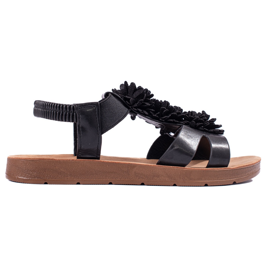 - Modèle: Sandales des femmes noires avec des fleurs Shelovet