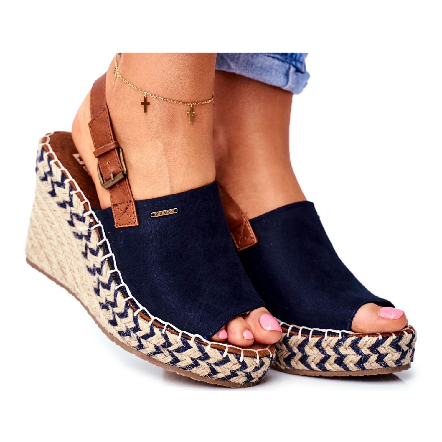 **Sandales compensées pour femmes Big Star bleu marine FF274980**