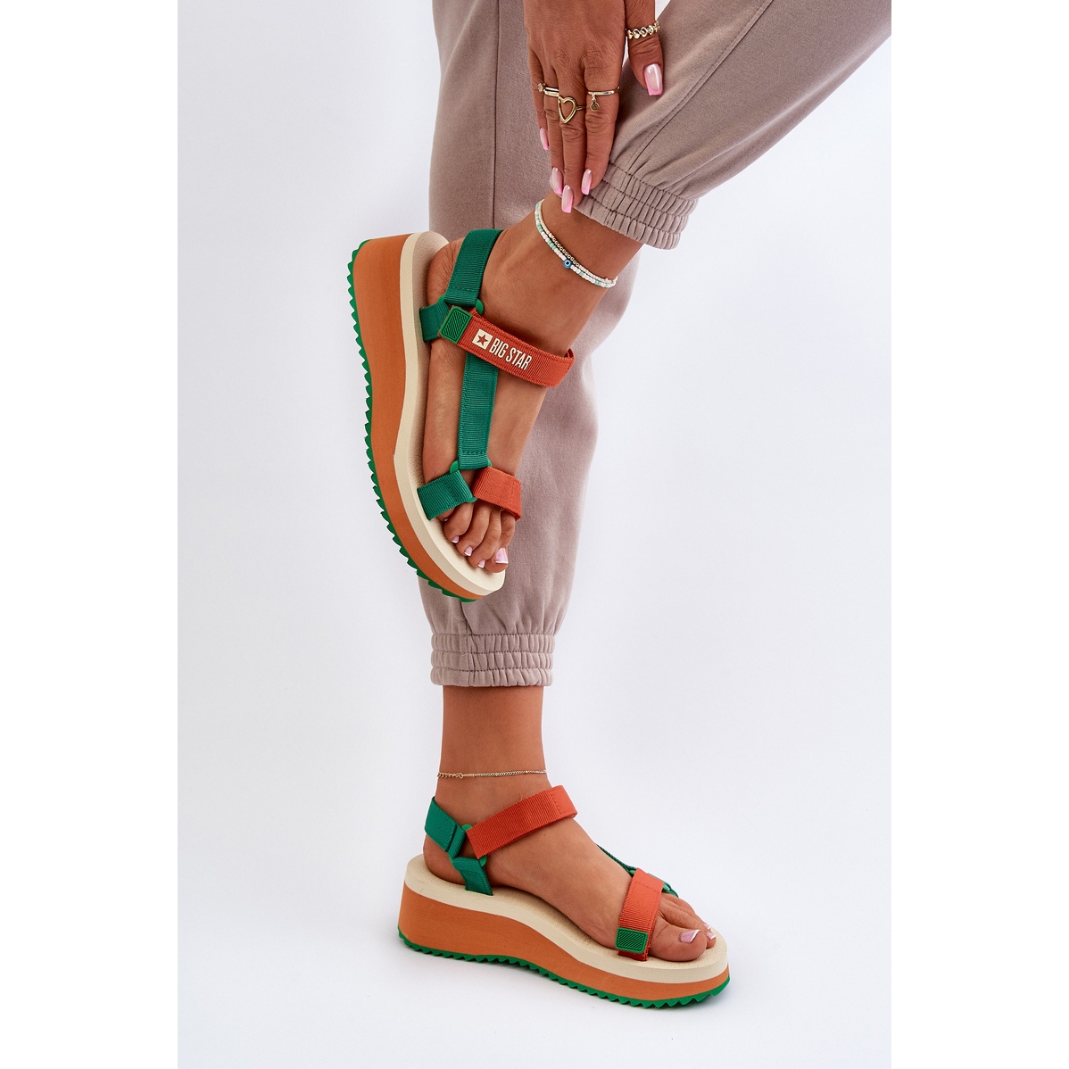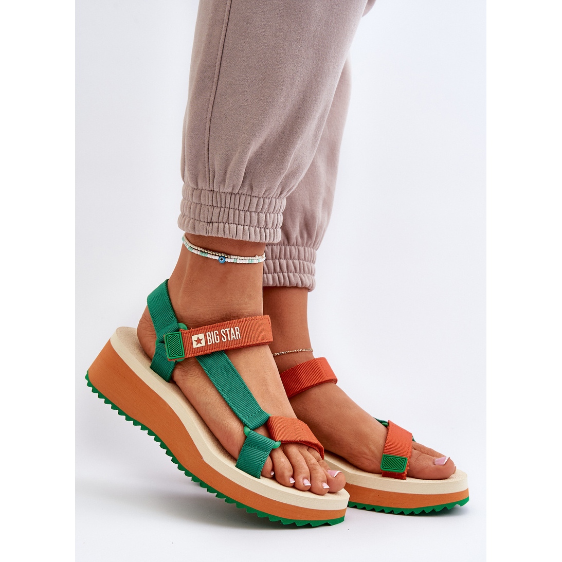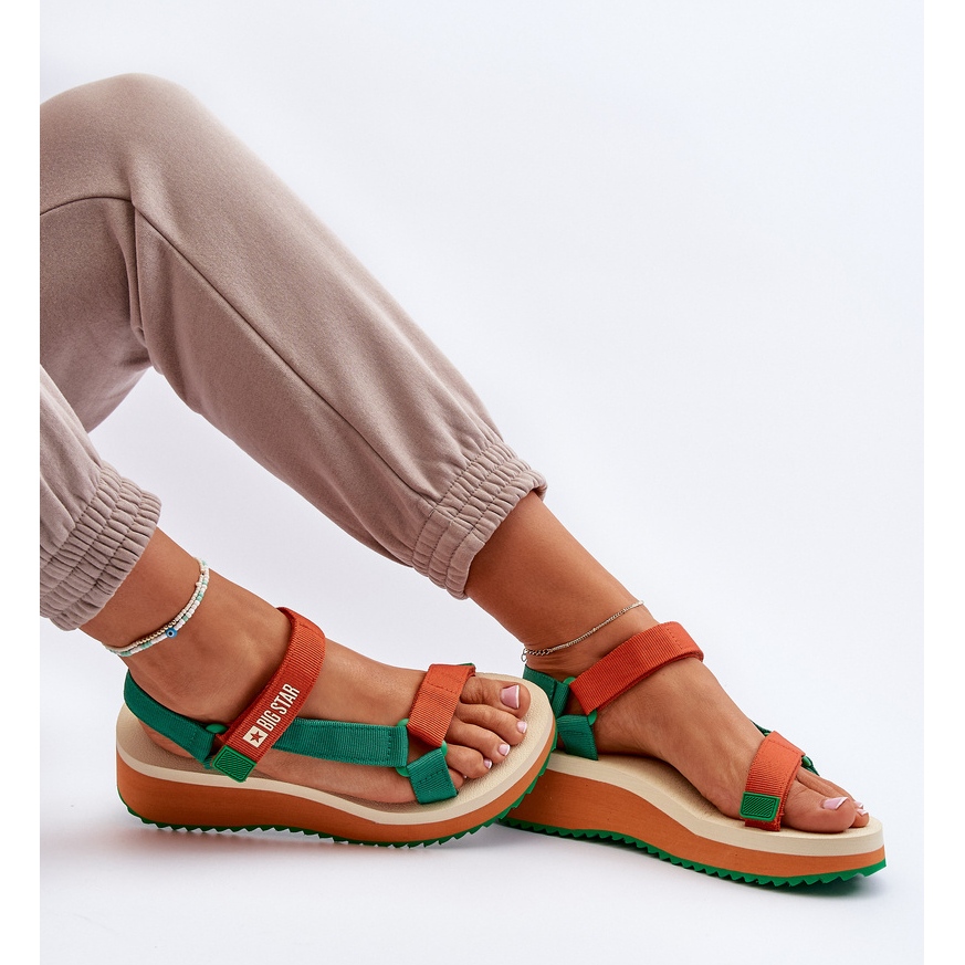 Détails: Sandales Femme Sur Plateforme Et Compensée Big Star NN274A053 Vert-Orange