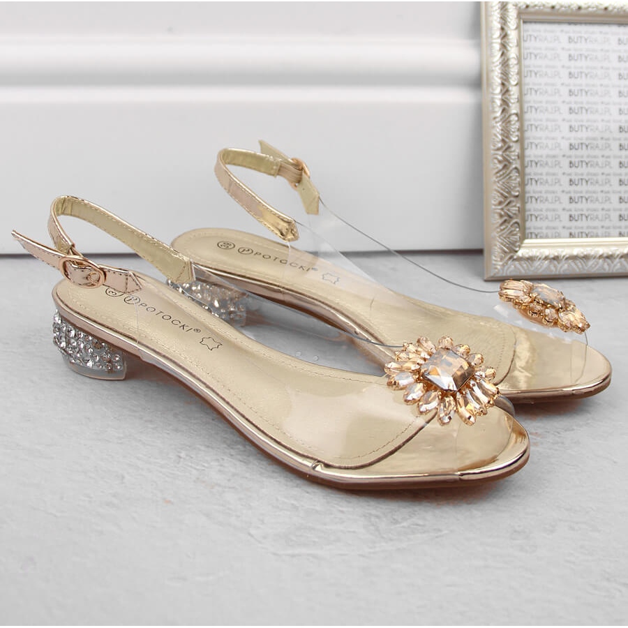 Les voici : des sandales transparentes pour femmes avec des zircons cubiques de la célèbre marque Potocki. Le modèle WS43301 dans une élégante couleur dorée est un choix parfait pour les femmes qui apprécient la combinaison de style et de confort.