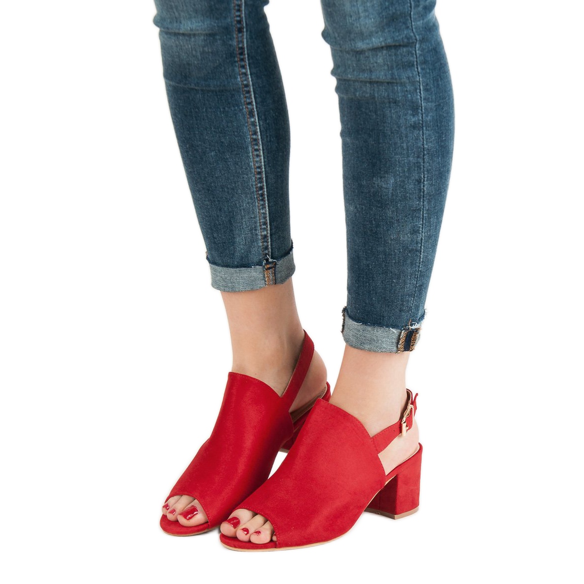 Découvrez l'élégance et le caractère unique des sandales fermées en daim rouge qui complèteront parfaitement le style de n'importe quelle femme. Le rouge, couleur pleine de passion, ajoutera un caractère unique et de la confiance en soi à vos tenues. Ces sandales cubiques et classiques en cuir suédé écologique se distinguent non seulement par leurs couleurs, mais aussi par leurs finitions soignées.