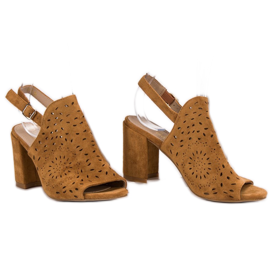 Les sandales fermées en daim SHELOVET de couleur marron sont une proposition idéale pour les femmes qui souhaitent ajouter un peu d'originalité et d'élégance à leur style. Ces sandales uniques, caractérisées par un design bâti, soulignent parfaitement la forme des jambes et leur design ajouré les rend extrêmement impressionnantes.
