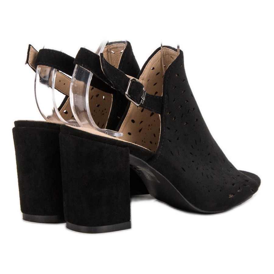 Voici les chaussures parfaites pour les journées et les soirées d'été : les sandales fermées en daim de SHELOVET en noir classique. Grâce à leur design élégant et leur talon haut de 8,5 cm, ces sandales allient confort et look tendance, pour que vous puissiez les porter aussi bien au quotidien que lors d'occasions spéciales.