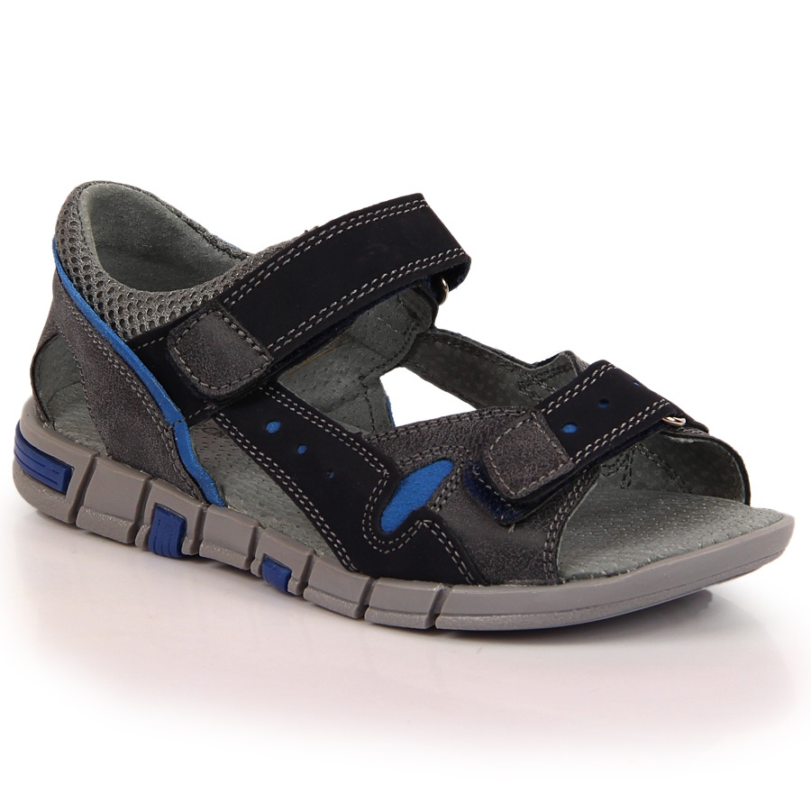 Découvrez les sandales garçon à scratch bleu marine et gris Kornecki, modèle 6186, parfaites pour les journées d'été. Ces sandales légères et confortables ont été conçues pour les garçons actifs qui apprécient le confort et le style. Fabriqués en cuir écologique de haute qualité, ils sont non seulement esthétiques, mais aussi fonctionnels, offrant à la peau une respirabilité.