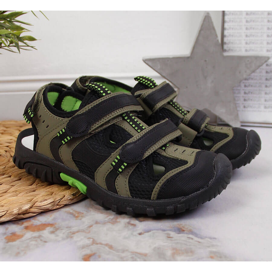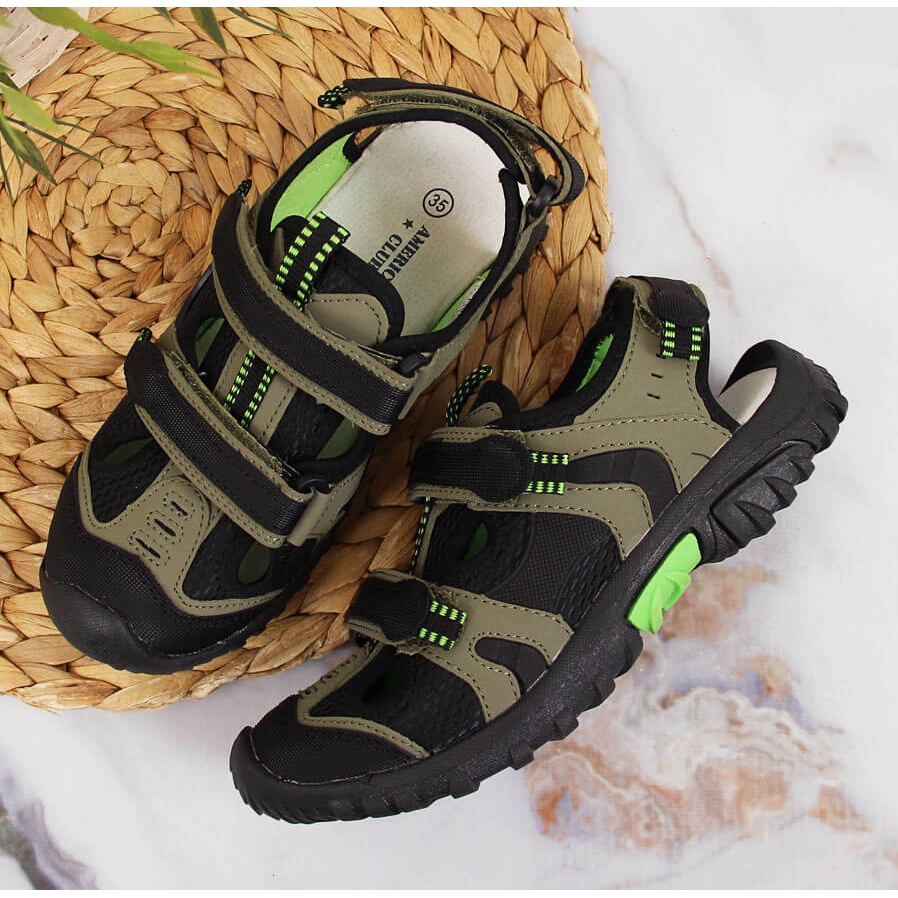 Détails: Sandales garçon American Club kaki à scratchs vert