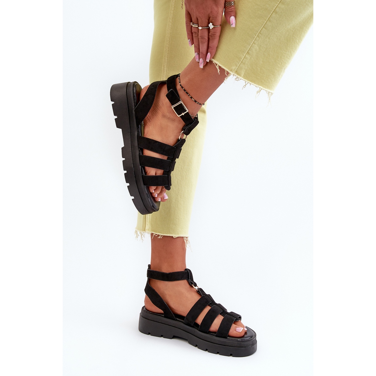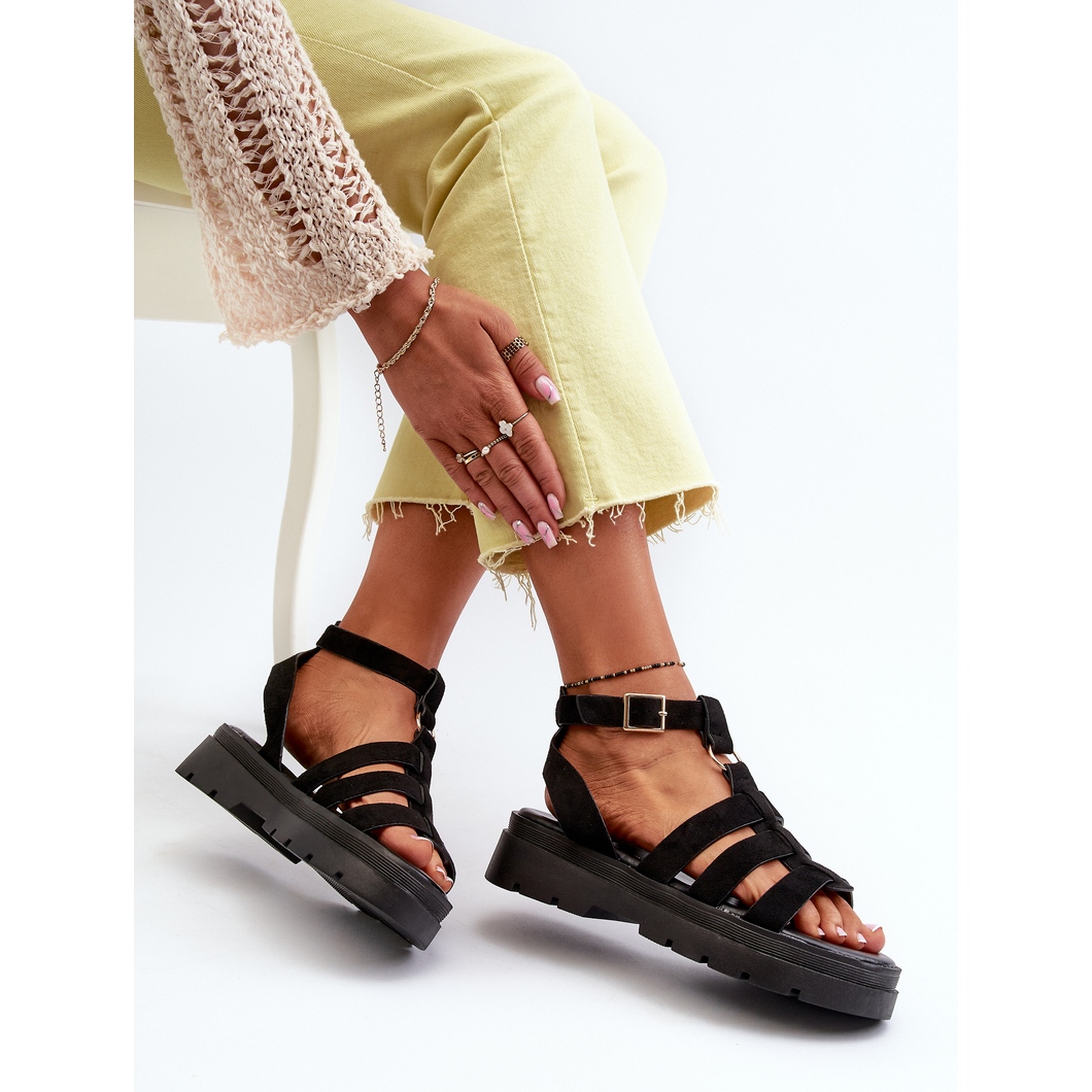 Inna marka Sandales Gladiateur Pour Femmes En Daim Eco Noir Dorameia le noir