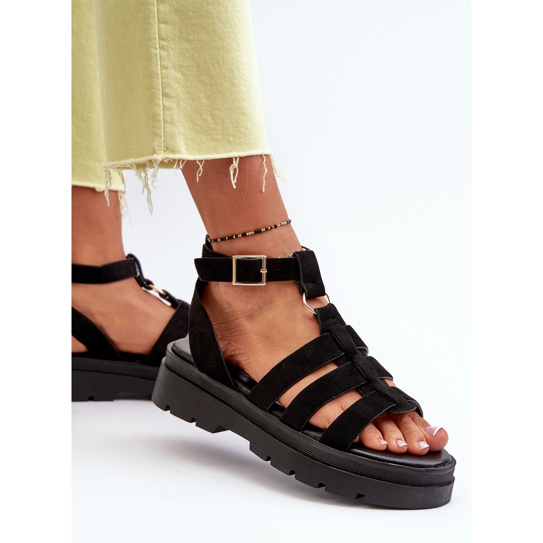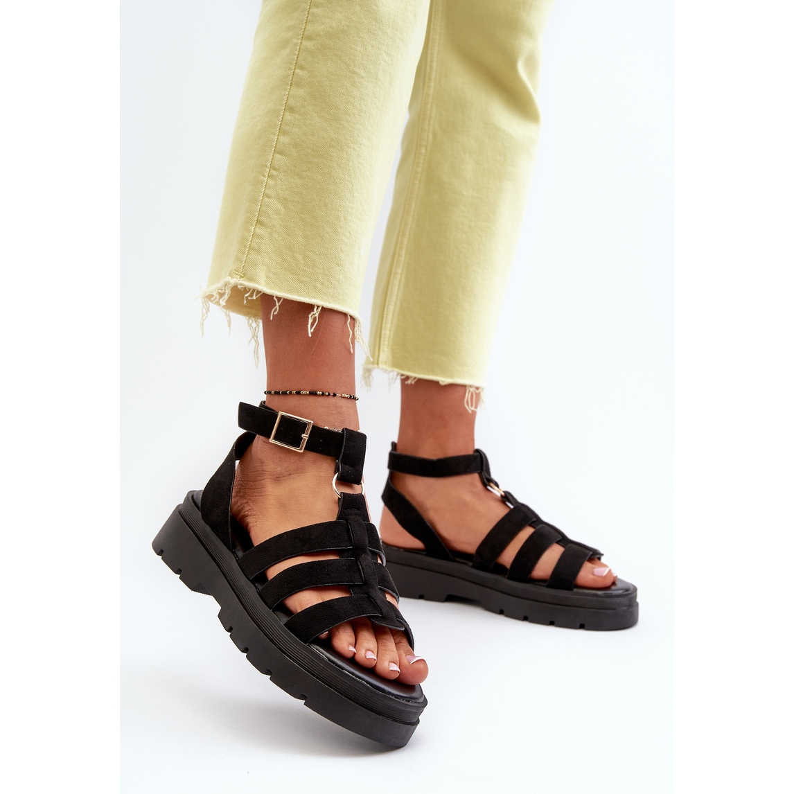 Détails: Sandales Gladiateur Pour Femmes En Daim Eco Noir Dorameia le noir