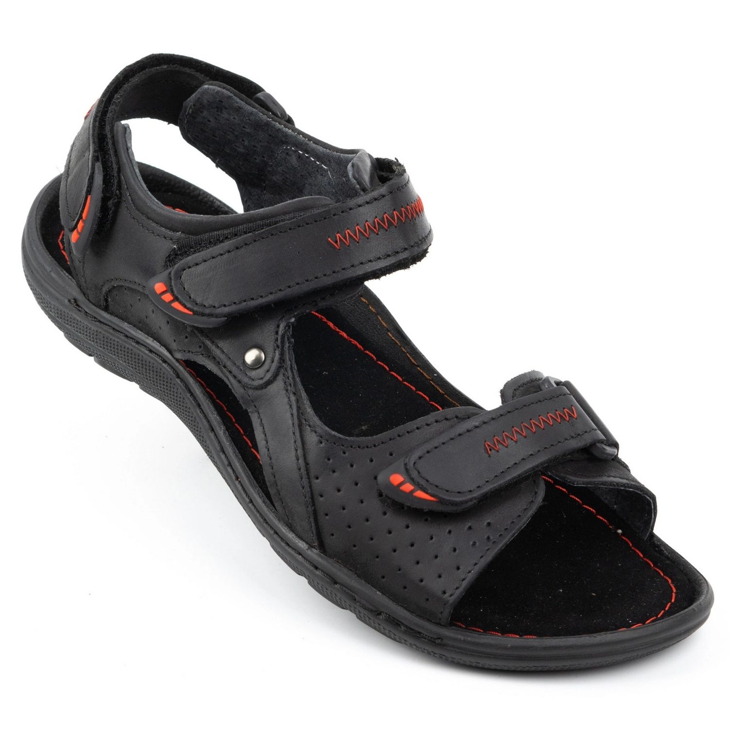 Les sandales masculines modernes Olivier 323 combinent le design noir classique avec des solutions pratiques, grâce à laquelle ils travailleront à la fois pendant les promenades en ville et les voyages d'été. Le haut et l'intérieur sont en cuir naturel, qui garantit la durabilité, la bonne ventilation et l'apparence esthétique.