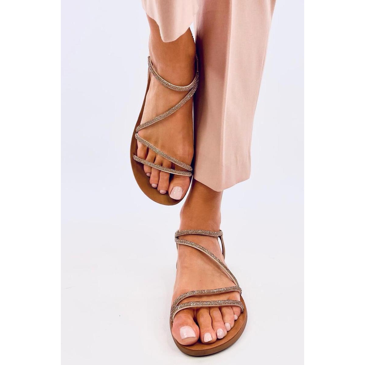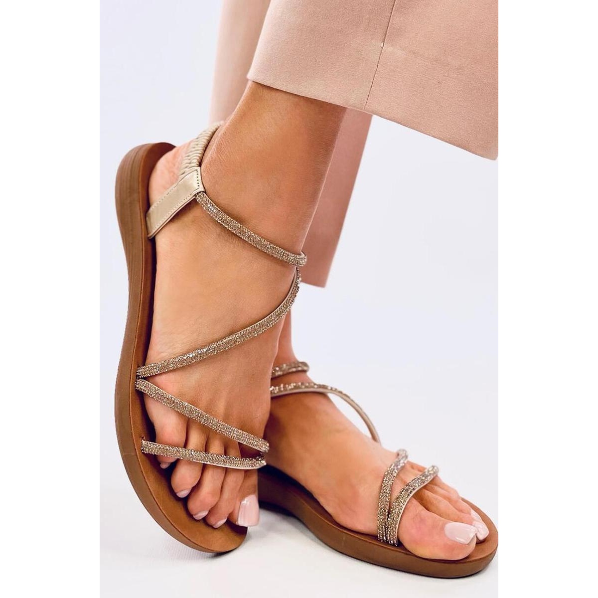 Sandales légères pour femmes à semelle plate. Les bracelets constellés de délicats zircons ne laissent personne indifférent... Sont-ils simplement plus qu'un incontournable ? assurez-vous de les adopter et de créer des styles uniques et de profiter du confort à chaque pas :) Matériau extérieur - cuir écologique.