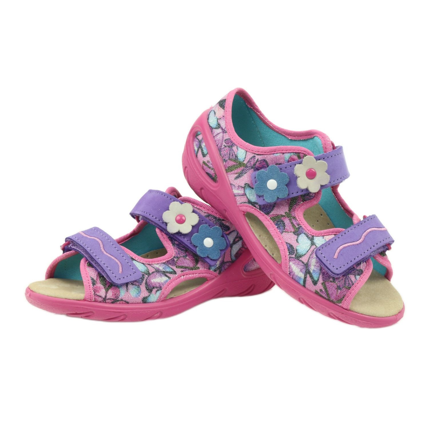 Découvrez le confort et le style avec les sandales légères Befado, modèle 065x120 ! Ces charmantes pantoufles aux nuances délicates de violet, bleu et rose sont le choix parfait pour chaque fille. L'utilisation d'une semelle intérieure en cuir et d'une doublure douce assure un excellent confort de port, et la semelle flexible et profilée en thermo-caoutchouc garantit la sécurité sur diverses surfaces grâce à ses propriétés antidérapantes.