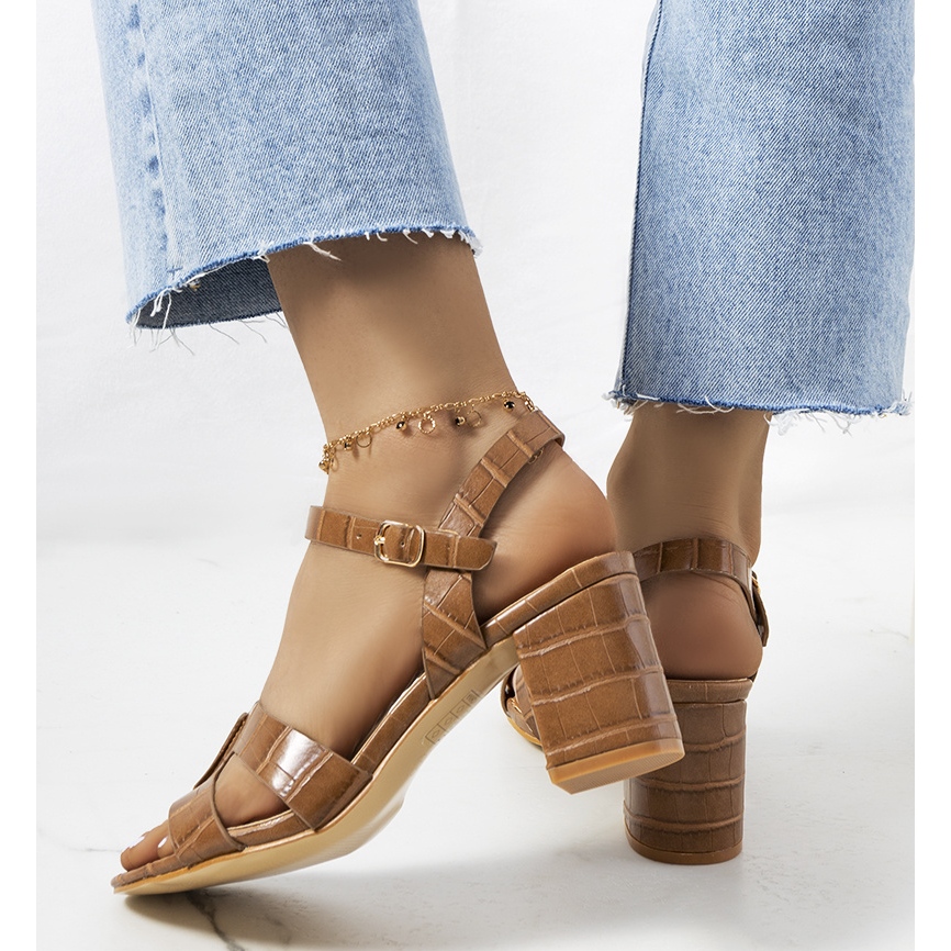 Les sandales à talons hauts marron Haiden sont un choix parfait pour les journées d'été et complèteront parfaitement n'importe quel style. Grâce à l'utilisation de cuir écologique de haute qualité, tant dans la semelle intérieure que dans la tige, les chaussures offrent un confort de port extraordinaire tout au long de la journée. Un petit poteau de 7 cm de hauteur met parfaitement en valeur la silhouette, ajoutant élégance et féminité à chaque pas.