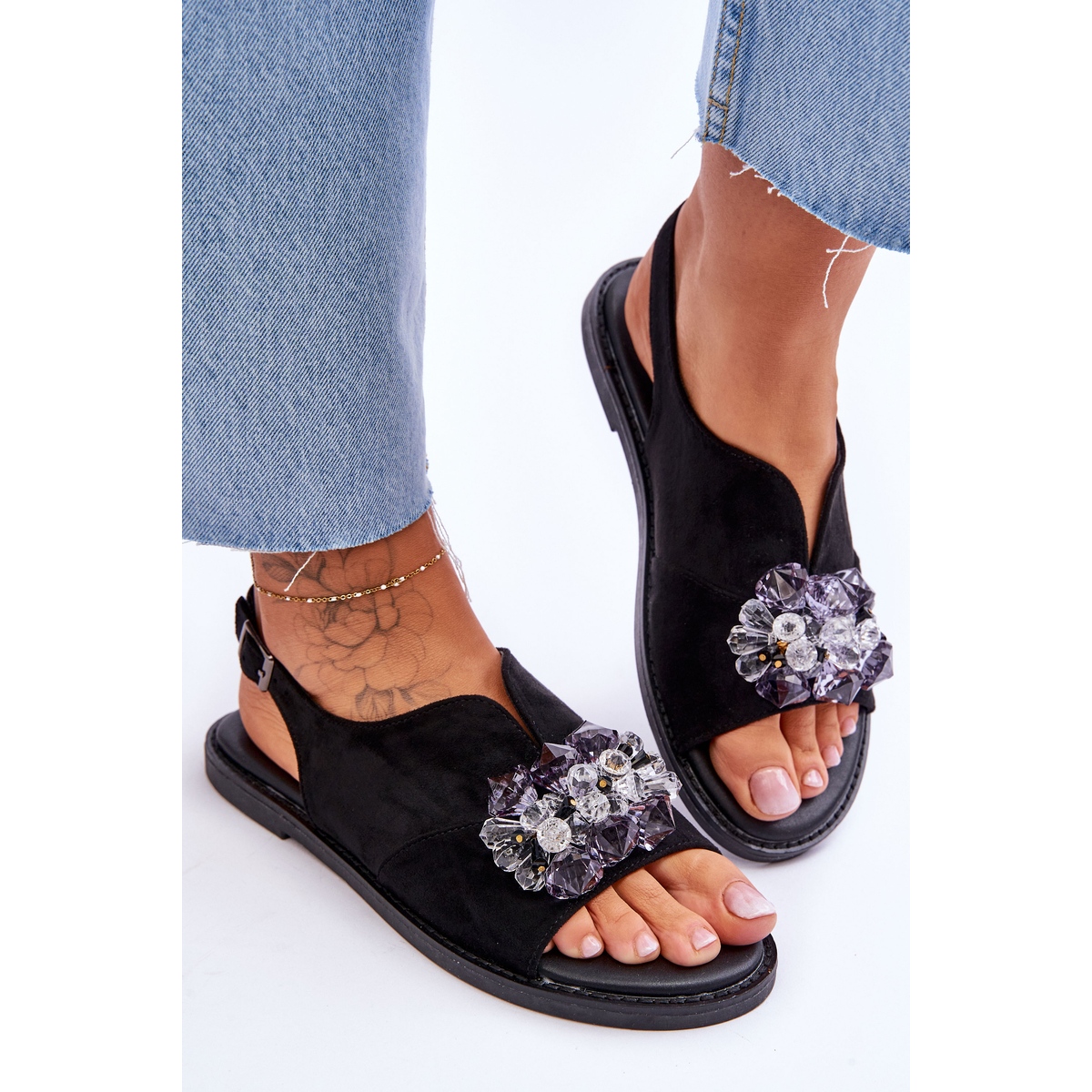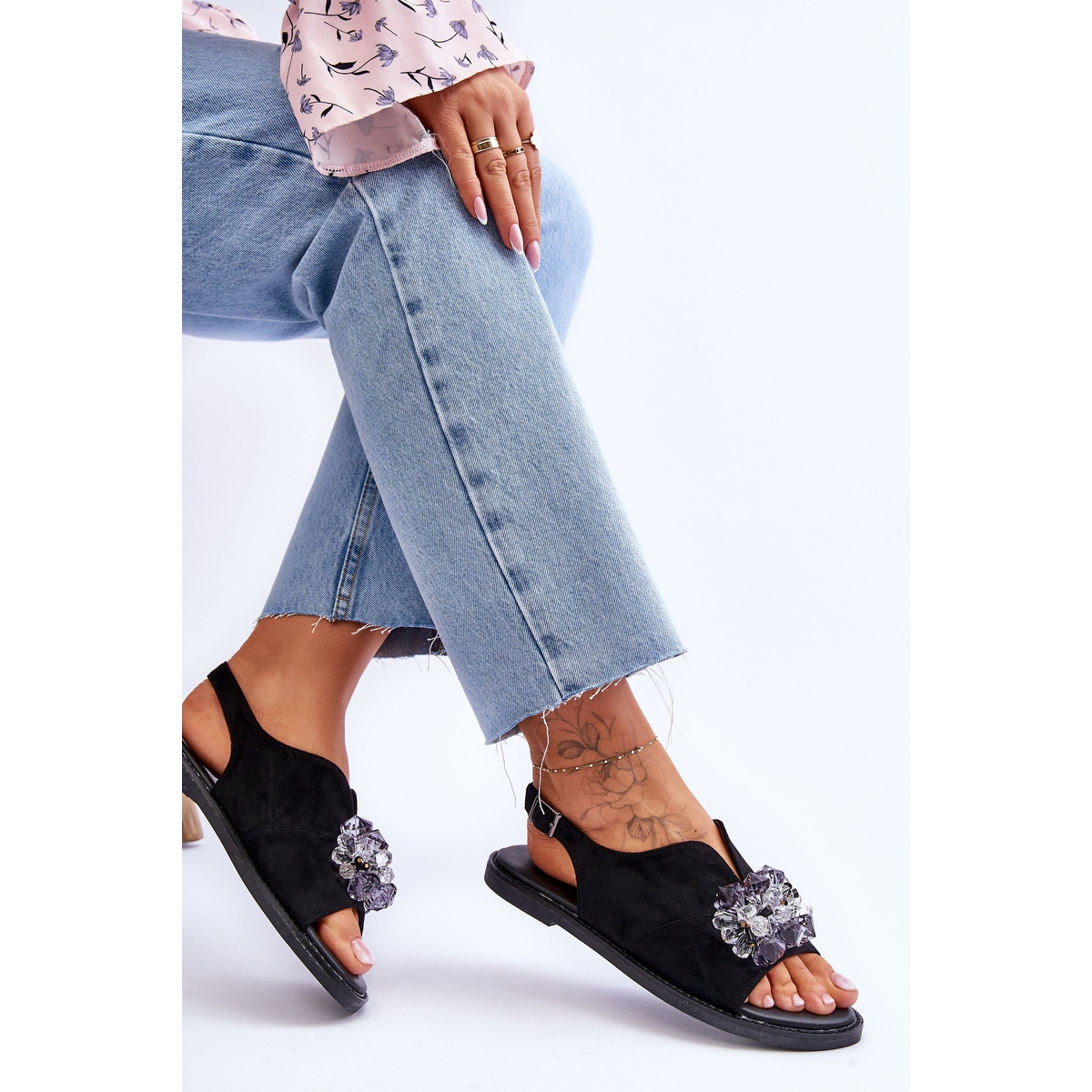 Décorées sur le devant avec des pierres en plastique qui imitent efficacement les diamants, les sandales en daim pour femmes Vinceza avec pierres Black Mersea attireront certainement l'attention et ajouteront de l'éclat aux styles d'été. Le design aéré des sandales est parfait aussi bien pour les promenades sur la plage que pour les sorties en soirée.