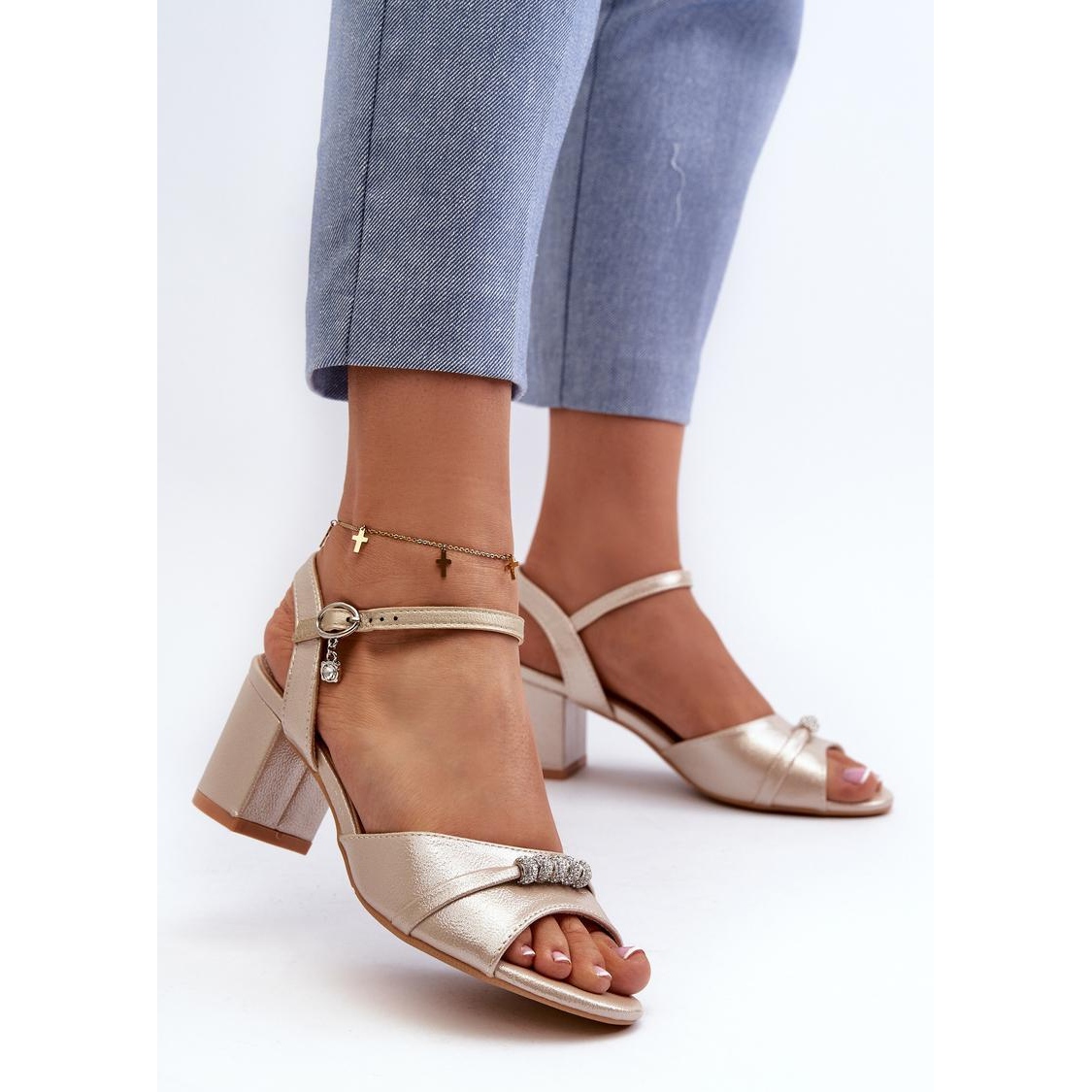 Sandales pour femmes à la mode par Vinceza. Fabriqué en daim écologique. Un talon stable en forme de tige assure un confort de port prolongé. Des décorations supplémentaires leur donnent un look subtil mais unique qui attire l'attention et en fait un complément parfait à de nombreux styles.