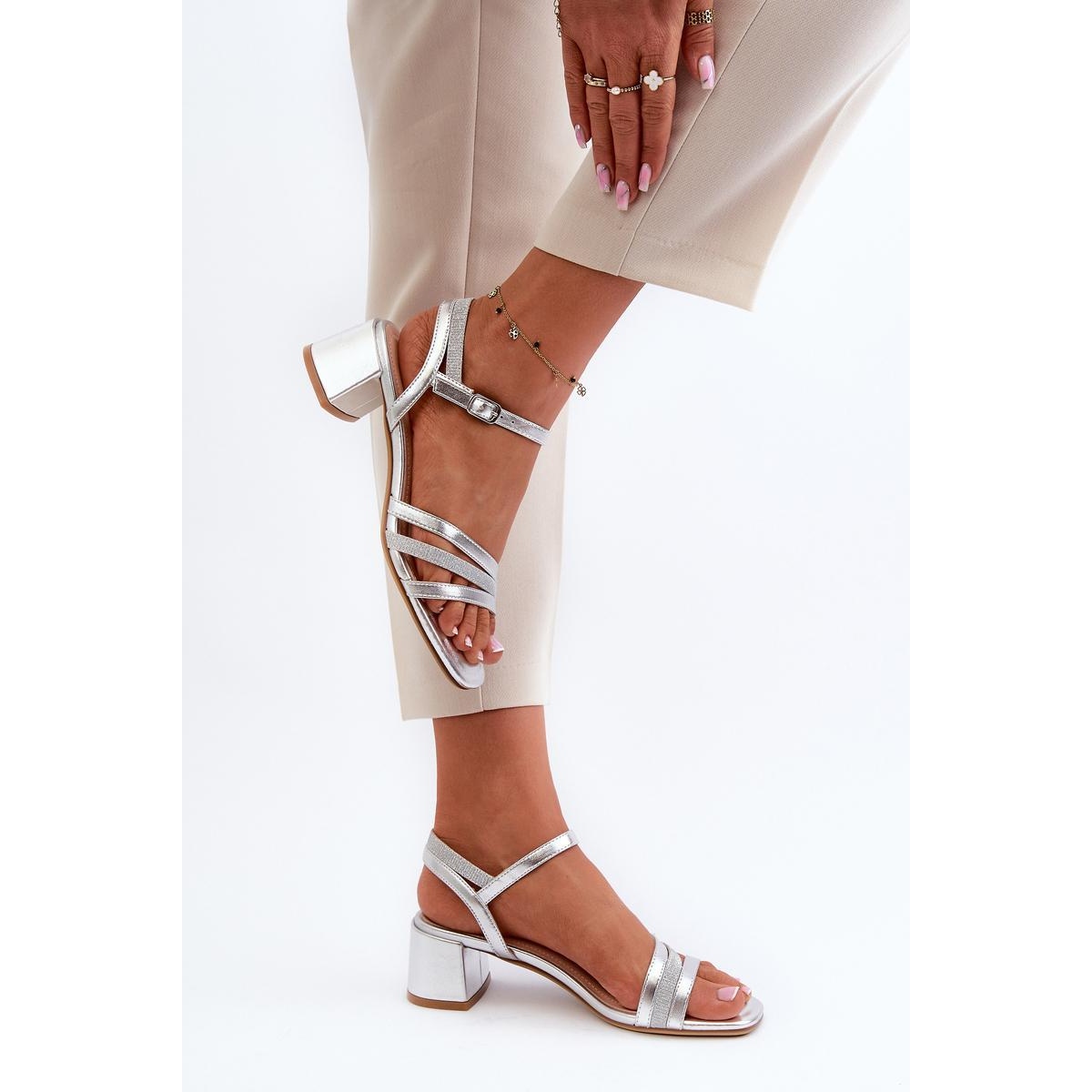 Leur conception unique se compose de trois sangles connectées à l'avant, ce qui leur donne la légèreté et le charme féminin. Le bloc de talons à talons bas bas de 5 cm assure la stabilité, vous pouvez donc les profiter toute la journée sans vous soucier de l'inconfort. De plus, les sandales sont fixées avec une ceinture réglable avec une boucle, ce qui vous permet de s'adapter parfaitement au pied.