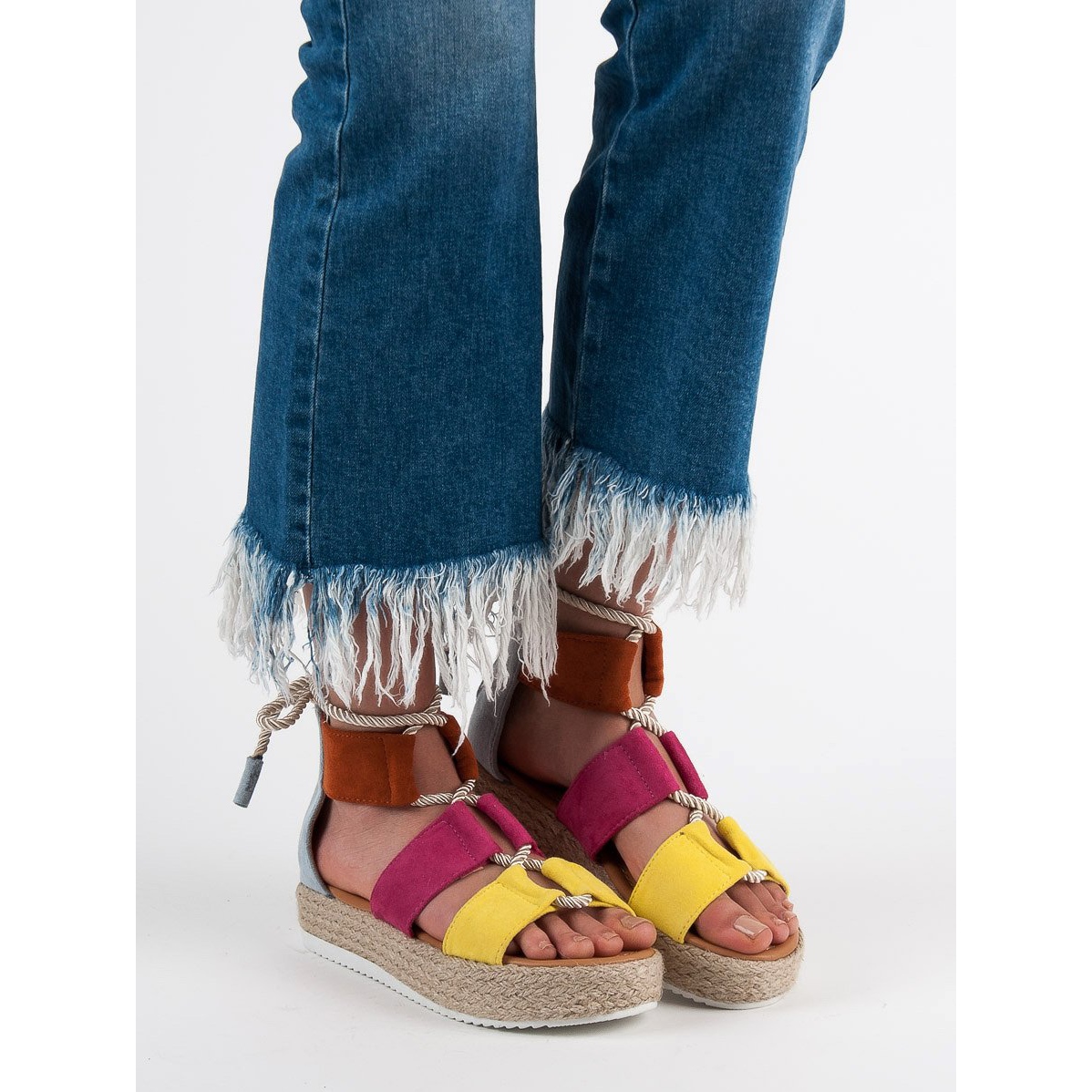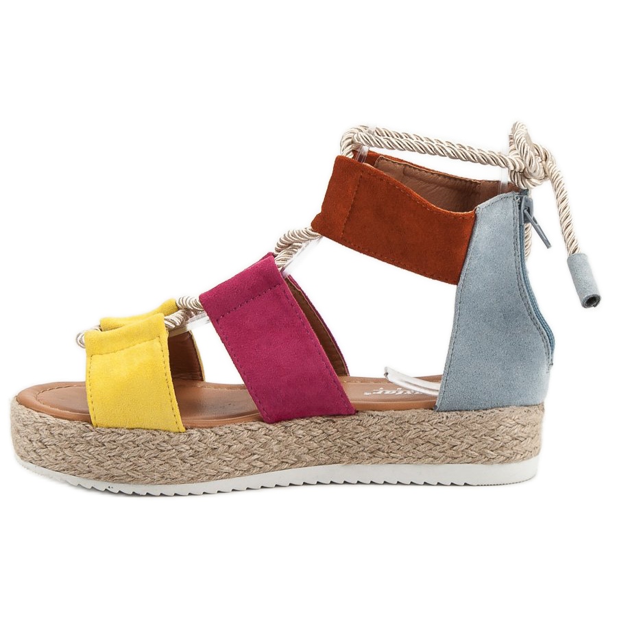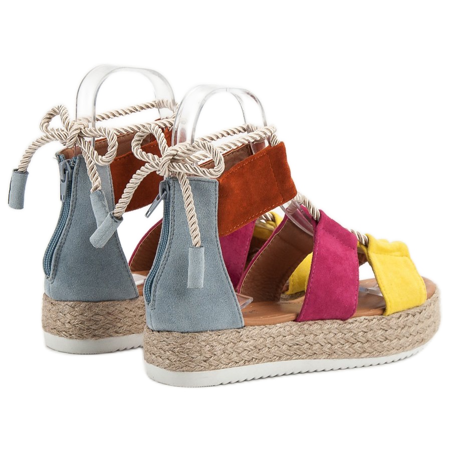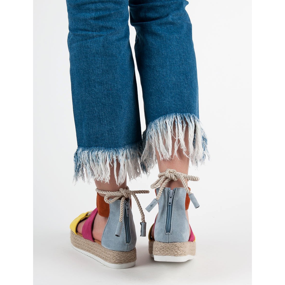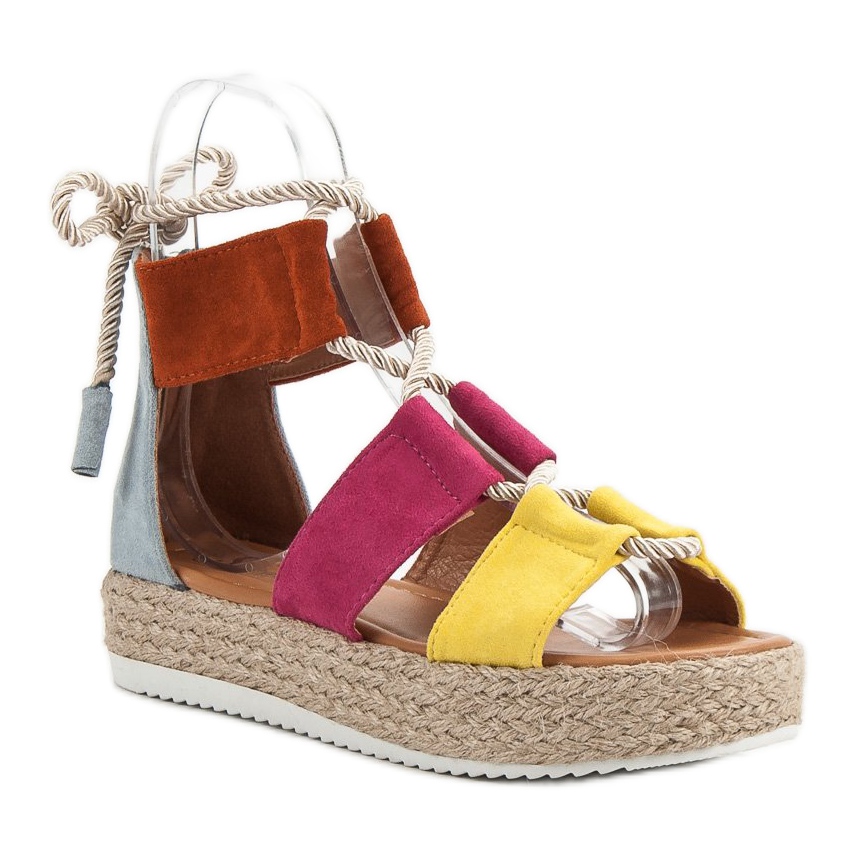 Les sandales se caractérisent par des couleurs riches qui égayeront n'importe quel style estival. Grâce à la plateforme de 4 cm, vous pouvez profiter d'un soulèvement subtil qui assure en outre un confort tout au long de la journée. La fermeture à lacets à la cheville maintient non seulement parfaitement le pied, mais ajoute également une touche tendance à n'importe quel style.