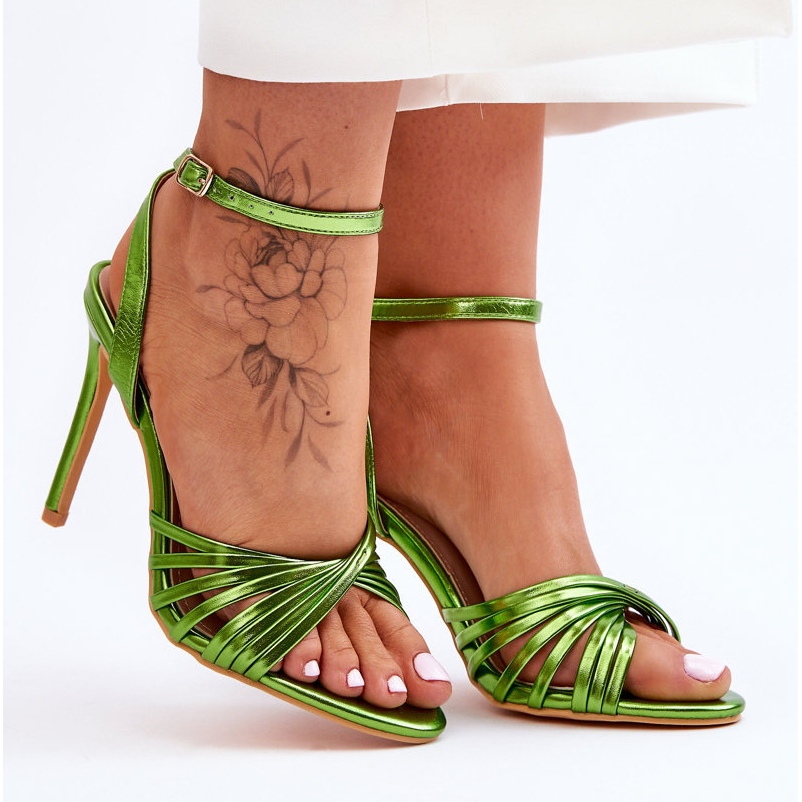 Les sandales à talons hauts vertes pour femmes My Darling sont des chaussures stylées et élégantes qui complèteront parfaitement de nombreux types de style. La chaussure est fixée à la cheville par une sangle réglable avec boucle, qui assure une bonne stabilisation et un confort de port. Les sandales ont l'avantage de disposer de brides sur le devant qui se nouent délicatement. Les chaussures reposent sur un talon aiguille de 10,5 cm.