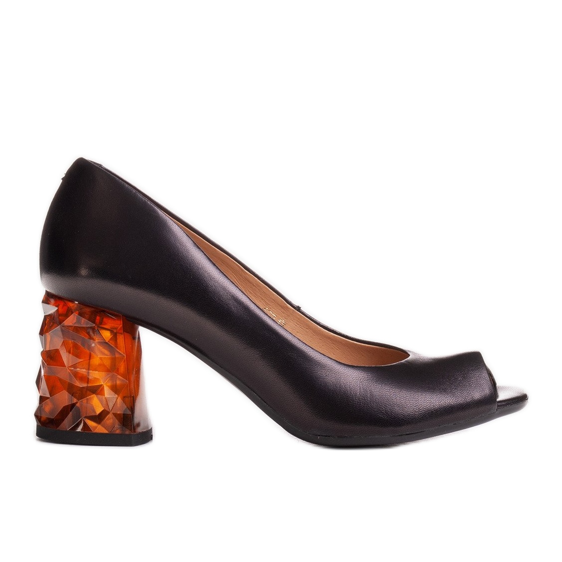 Marco Shoes Sandales noires 1519P avec talon ambre 3D