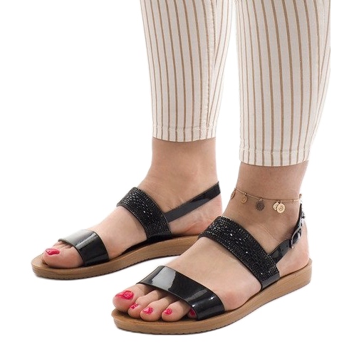 Inna marka Sandales noires à paillettes G-515-01 le noir