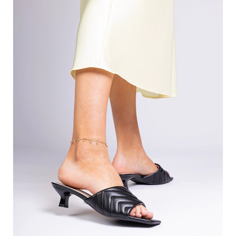 Les tongs élégants de Launay combinent un nez carré à la mode avec le confort et les fonctionnalités quotidiennes. Un modèle coulissant avec une large bande décorée de courtepointe spectaculaire fonctionnera à la fois pour les stylisations d'été décontractées et les ensembles plus élégants.
