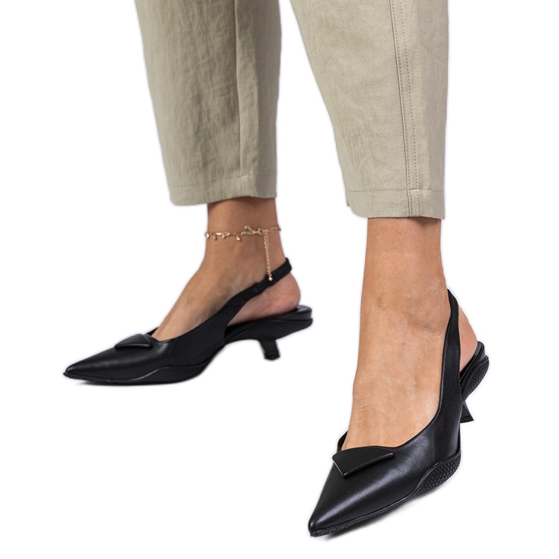 Un modèle LL-262P classique et moderne de la collection Keeshoes. Sandales en cuir écologique (extérieure et insert) dans une couleur noire universelle (noir). Ils se caractérisent par un nez fermé et légèrement pointu et un talon extérieur - une combinaison parfaite d'élégance avec un été respirant d'été.