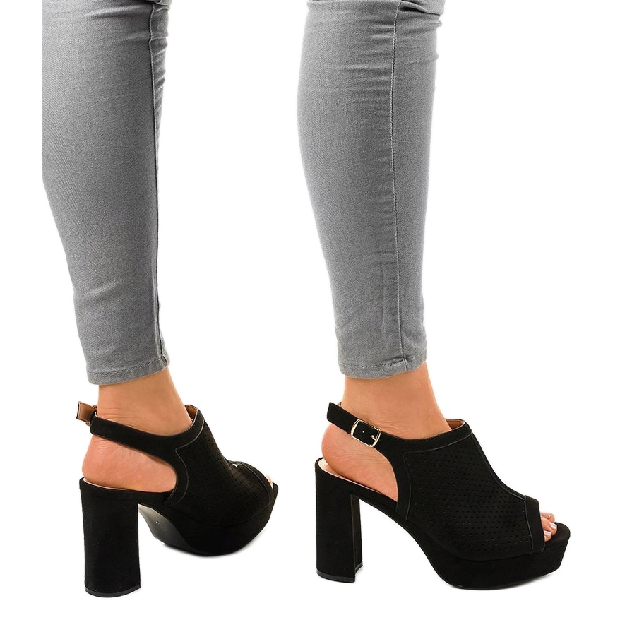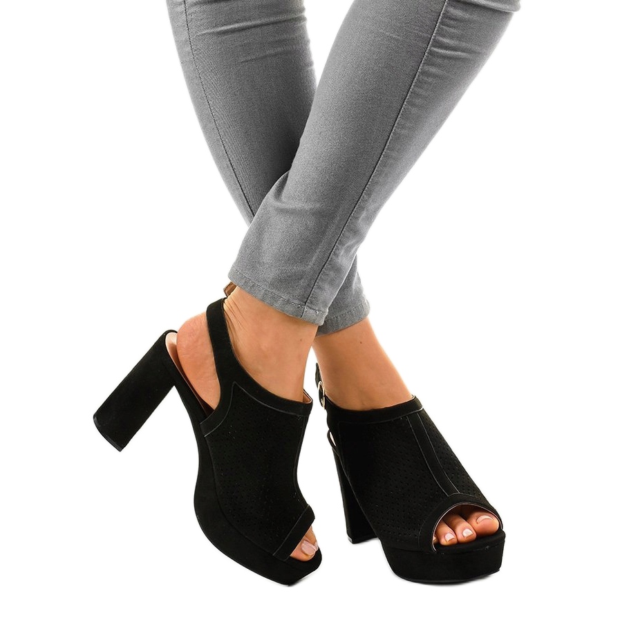 Détails: Sandales noires à talon ajouré 9R82 le noir